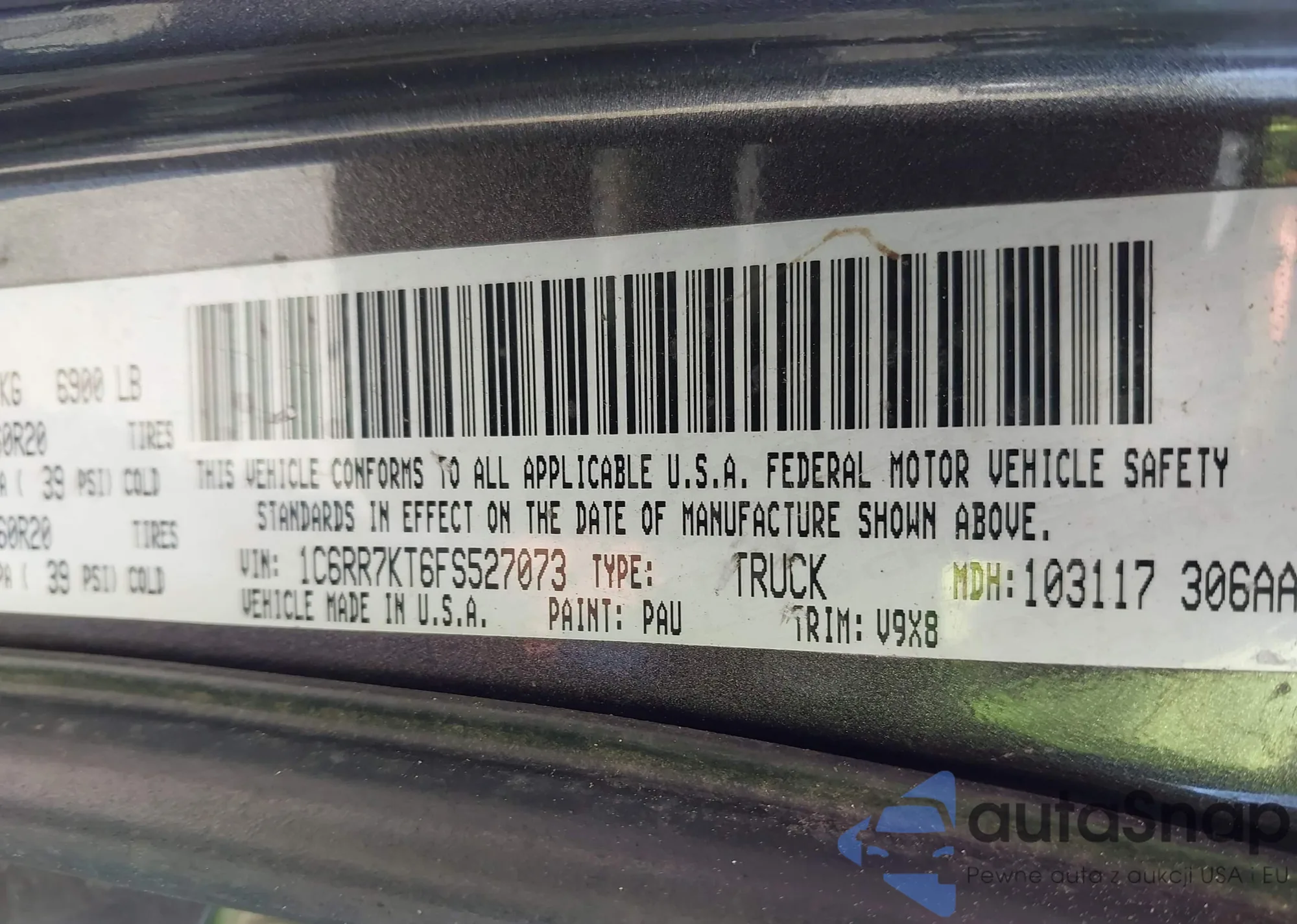 • VIN 1C6RR7KT6FS527073