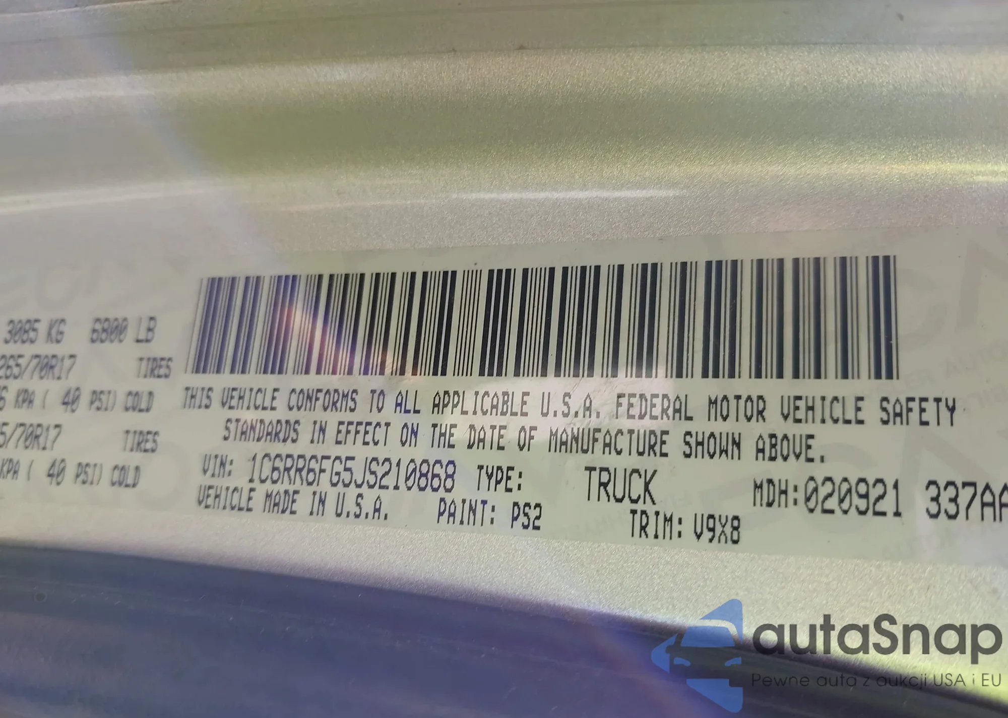 • VIN 1C6RR6FG5JS210868