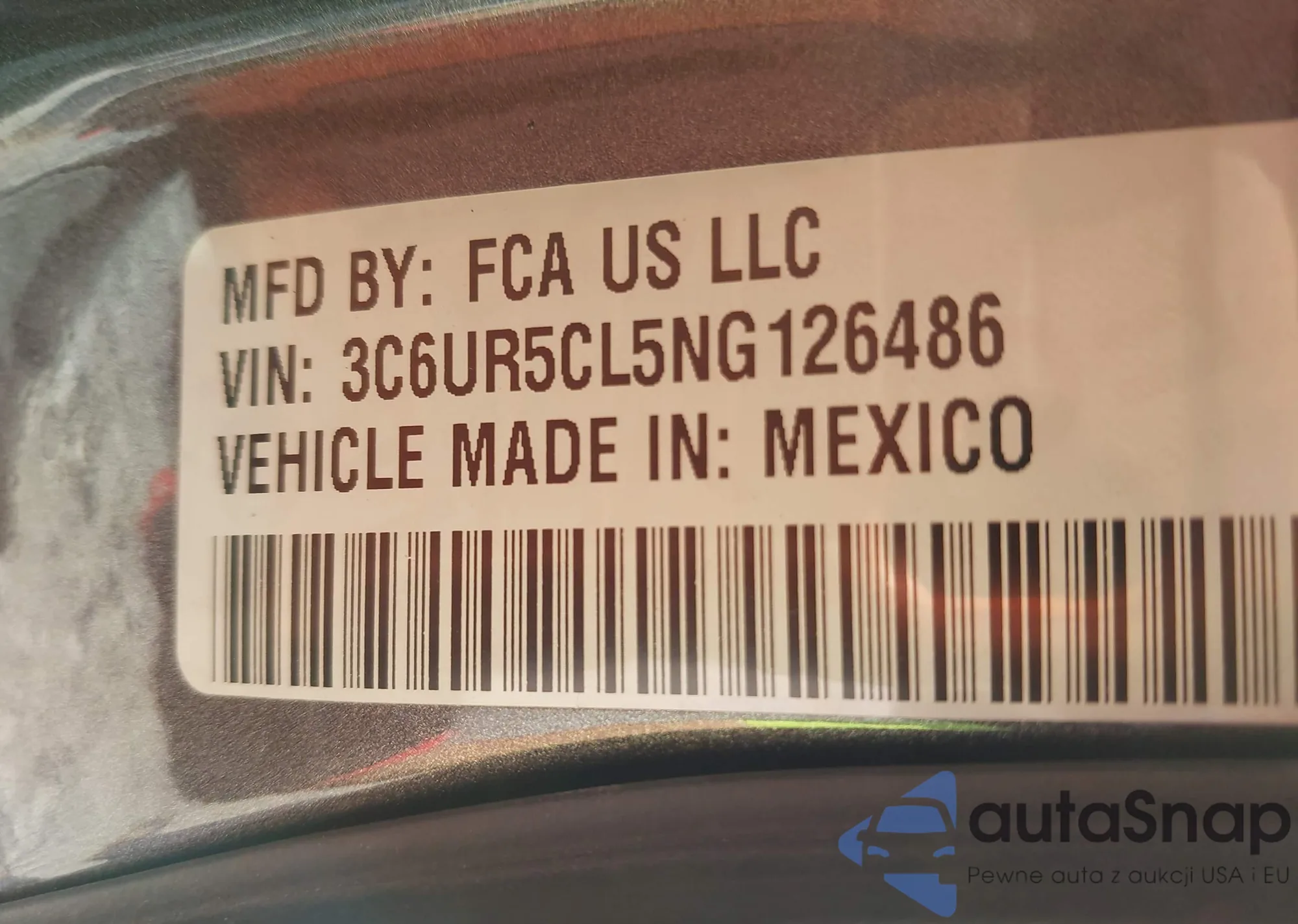 • VIN 3C6UR5CL5NG126486