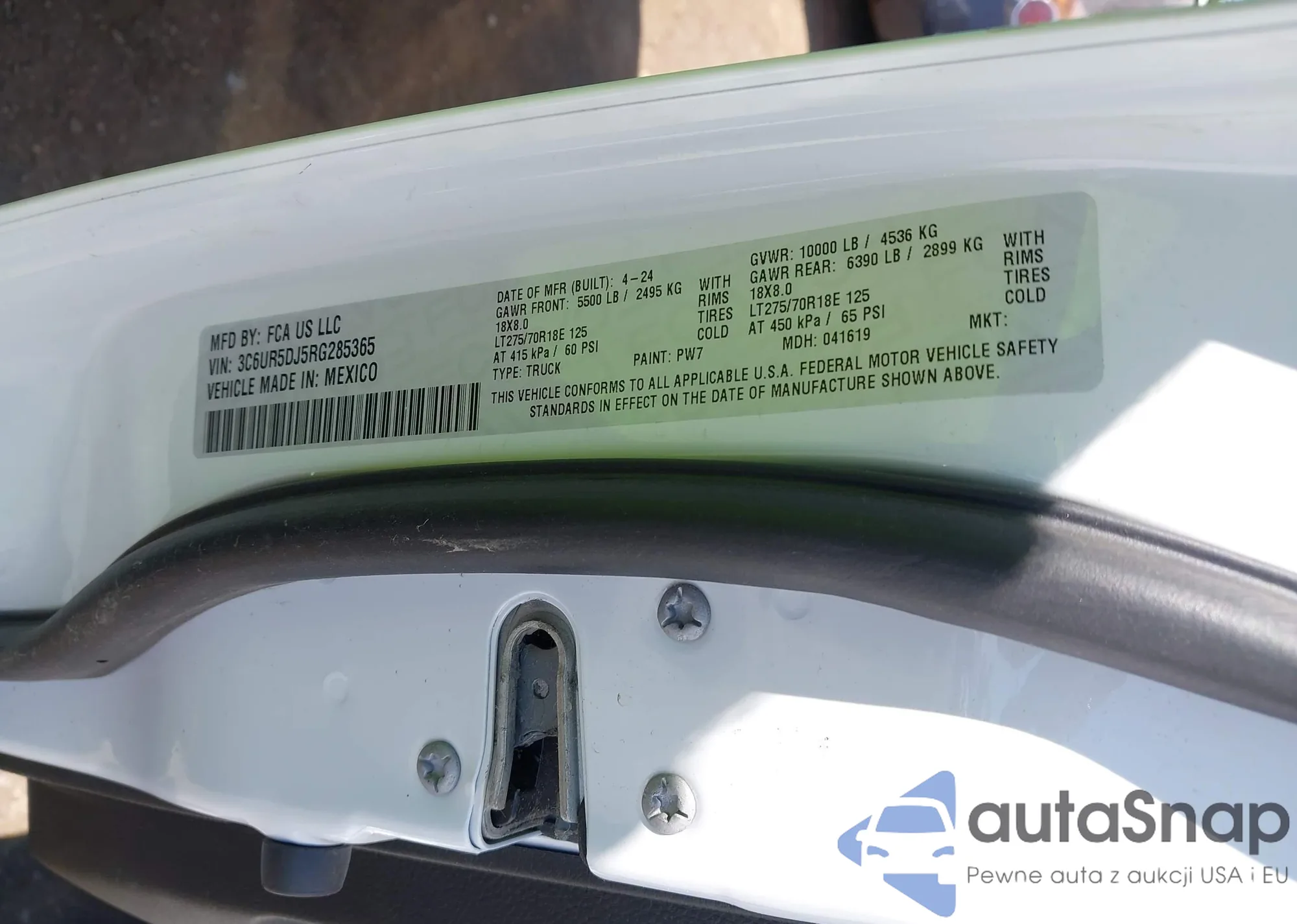 • VIN 3C6UR5CL5JG184625