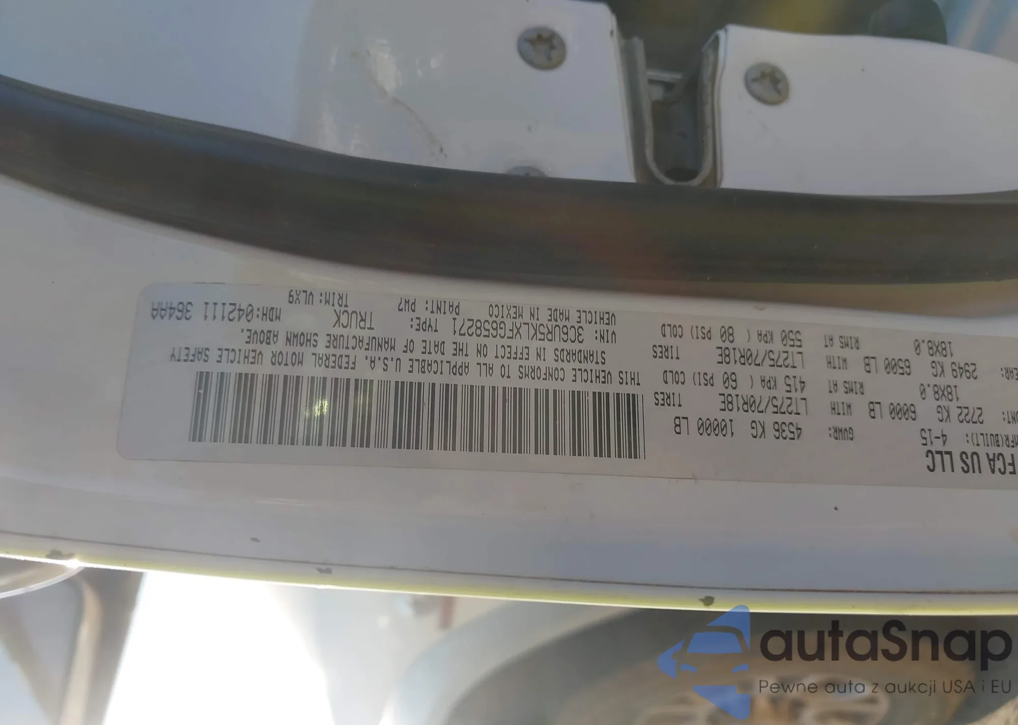 LOT: 43221477 VIN: 3C6UR5KLXFG658271