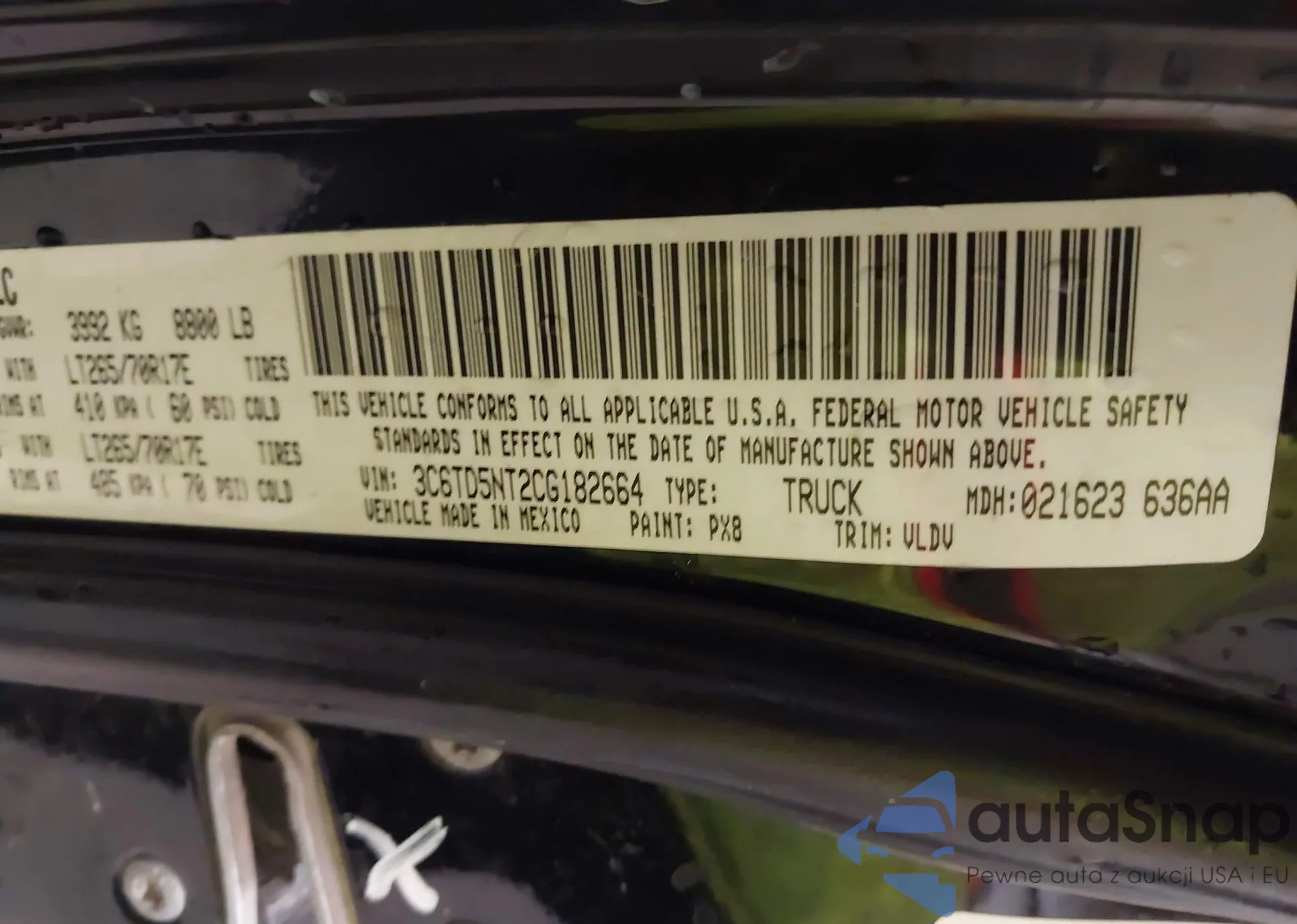 • VIN 3C6TD5NT2CG182664