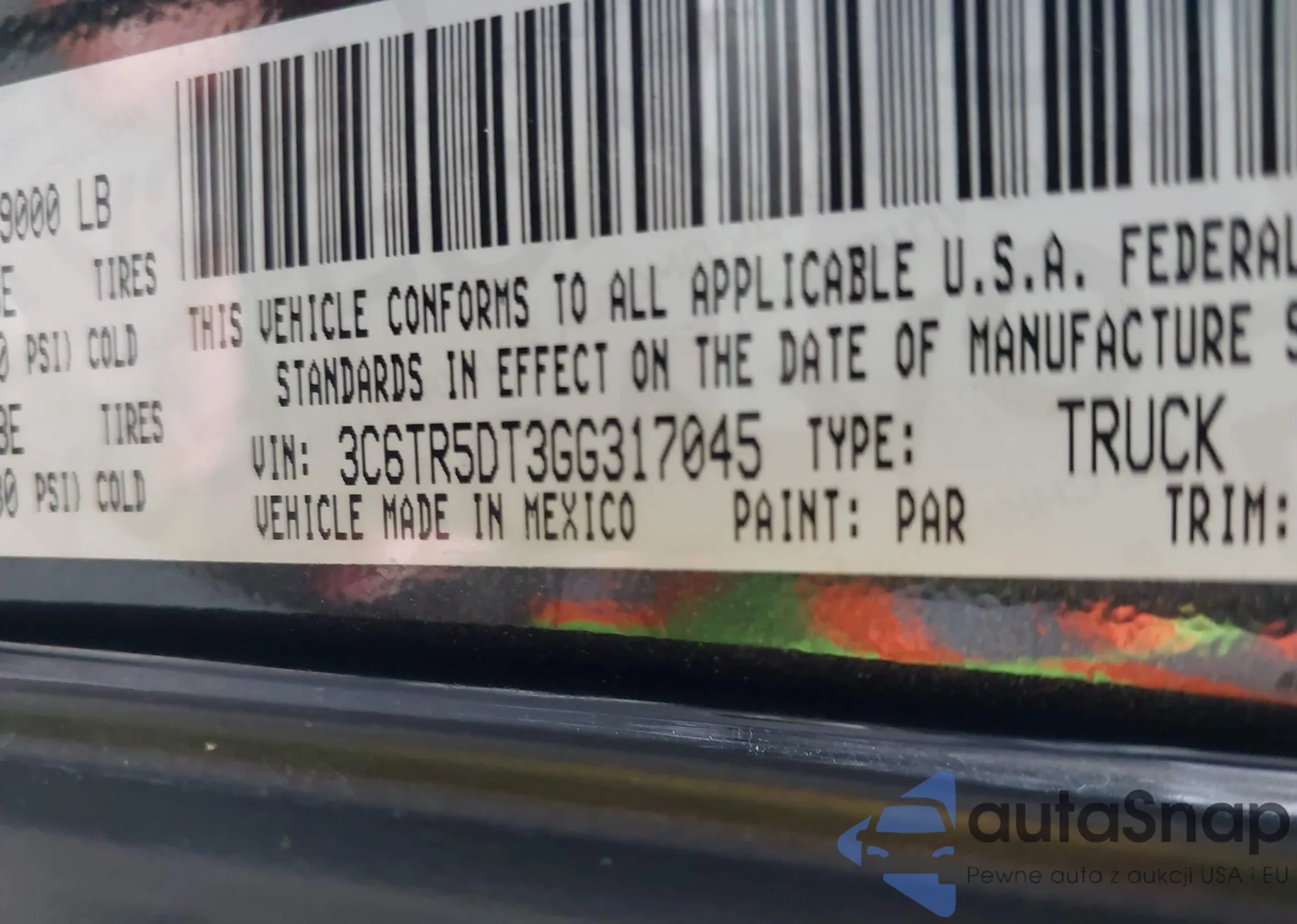 • VIN 3C6TR5DT3GG317045