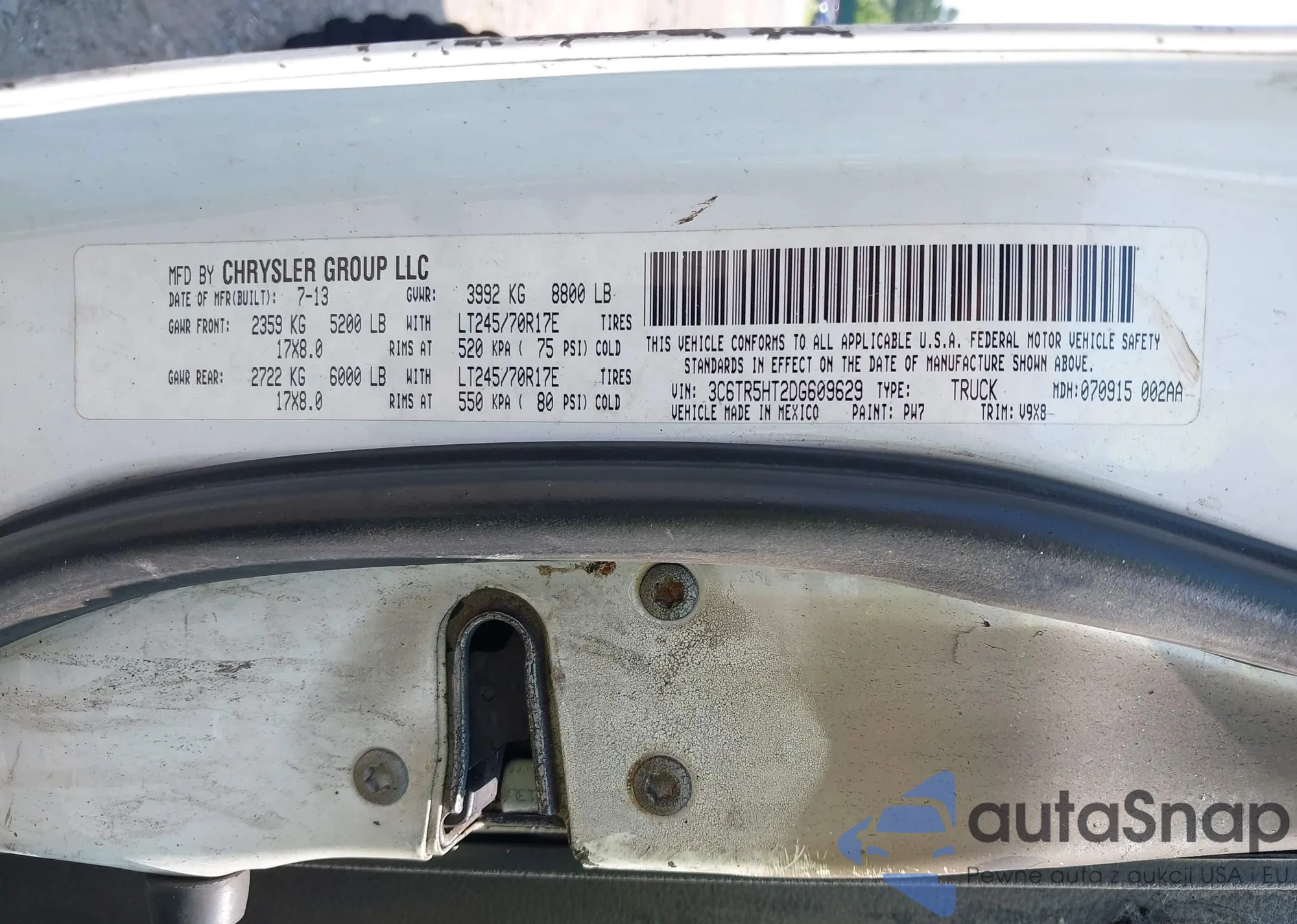 • VIN 3C6TR5HT2DG609629