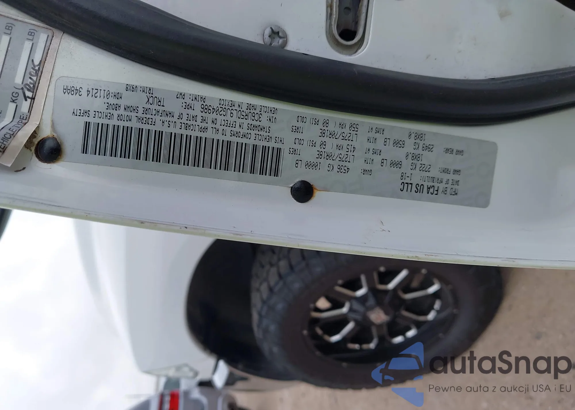• VIN 3C6UR5DL9JG204986