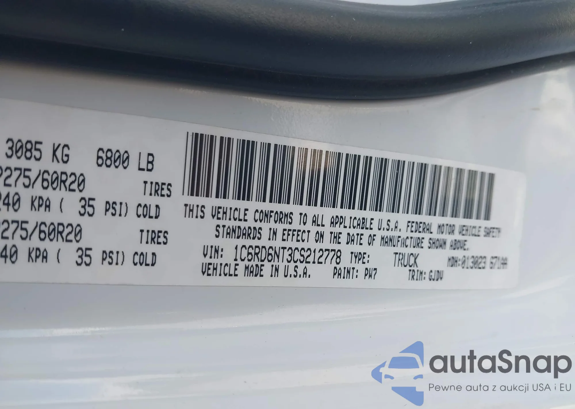 • VIN 3C6TD5CT6CG170052