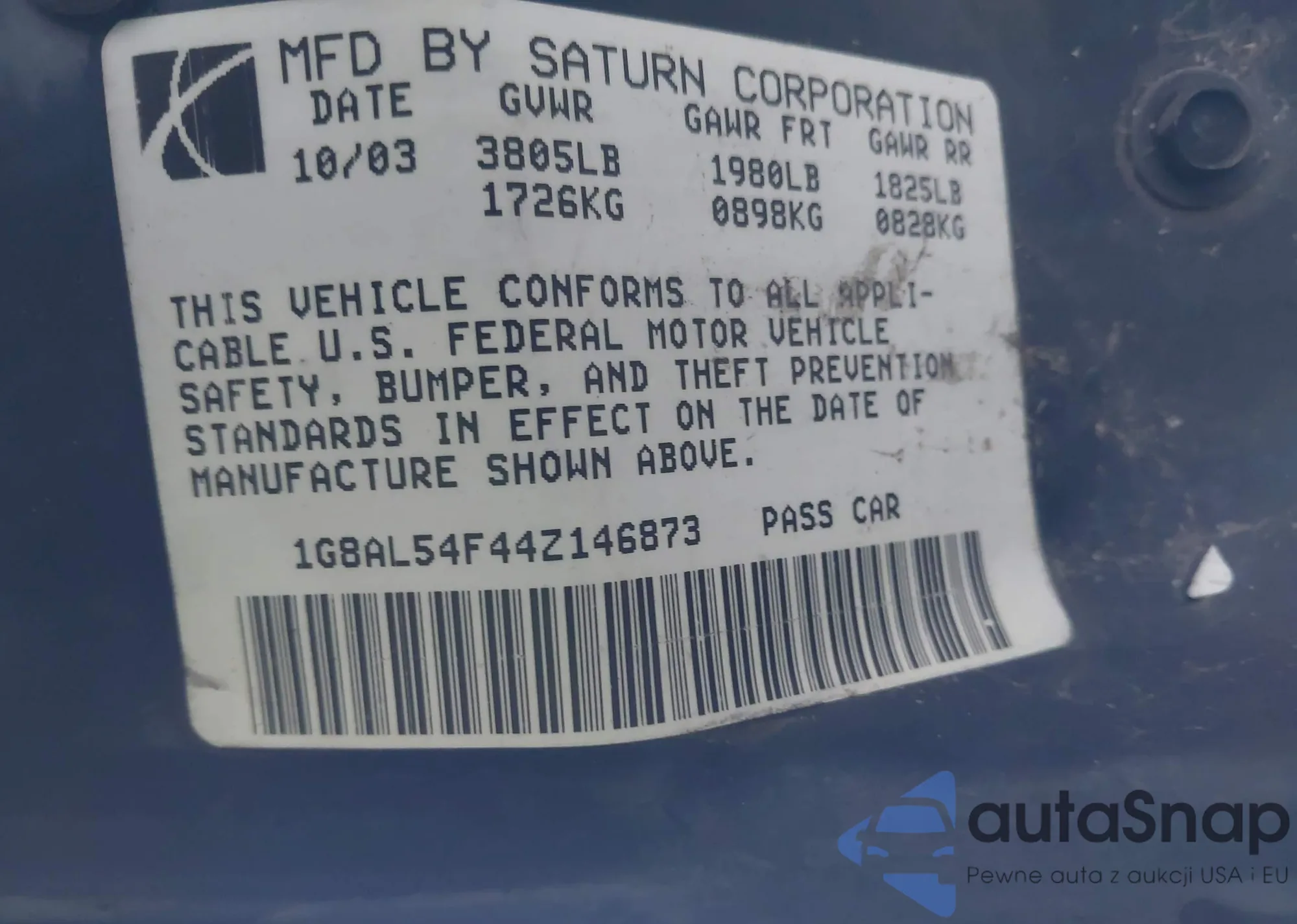 • VIN 1G8AL54F44Z146873