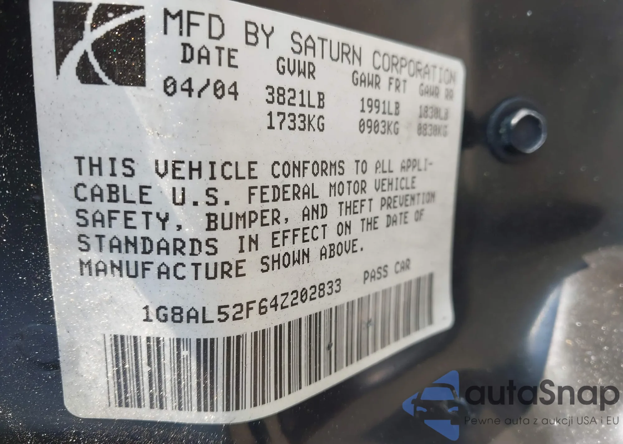 • VIN 1G8AL52F64Z202833