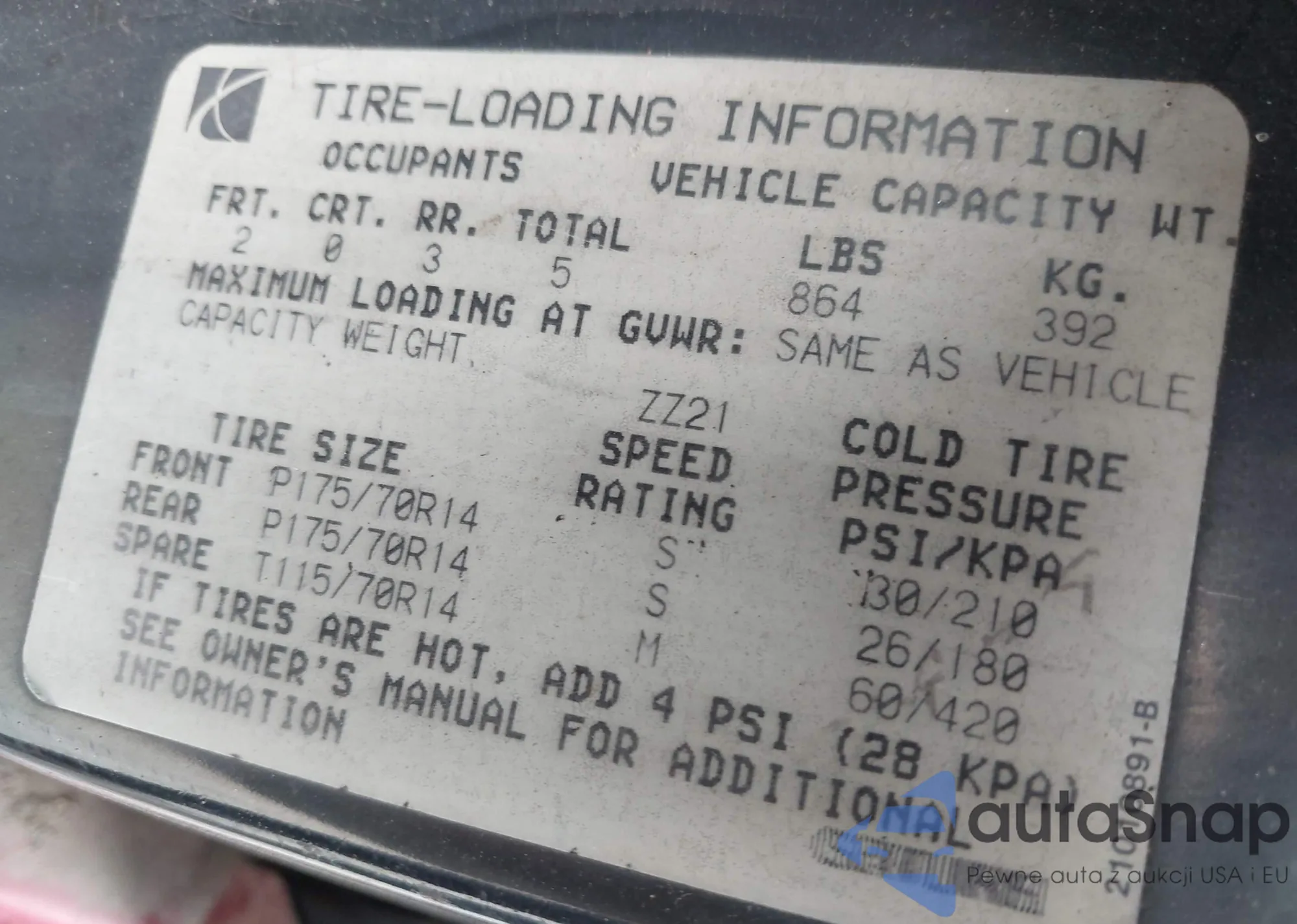 • VIN 1G8ZF5282SZ170763