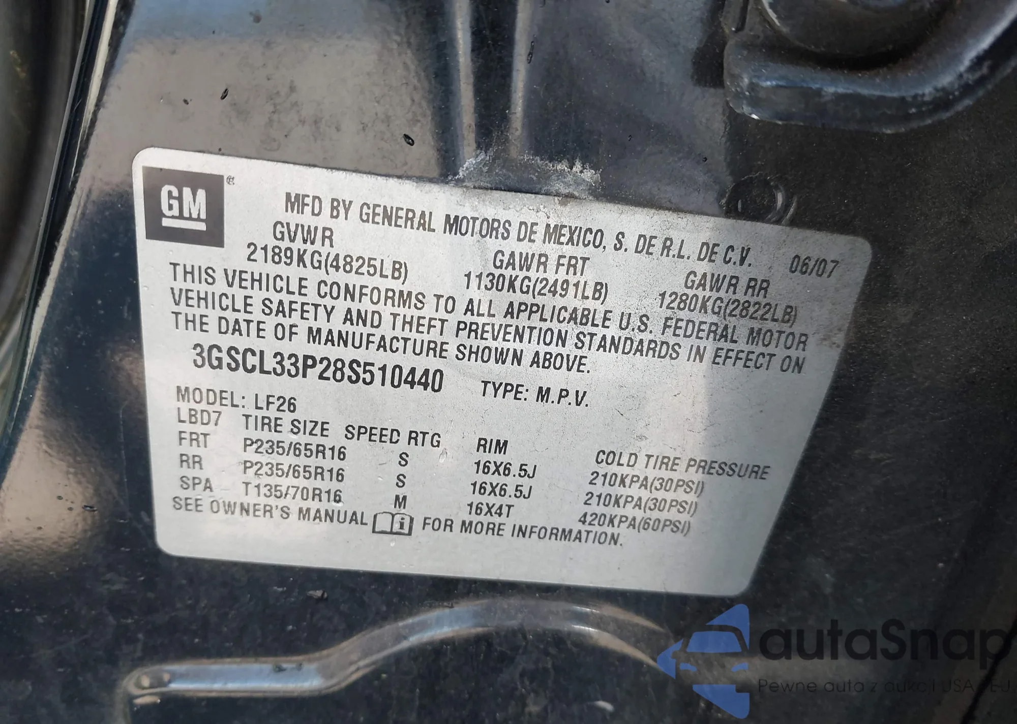 • VIN 3GSCL33P28S510440