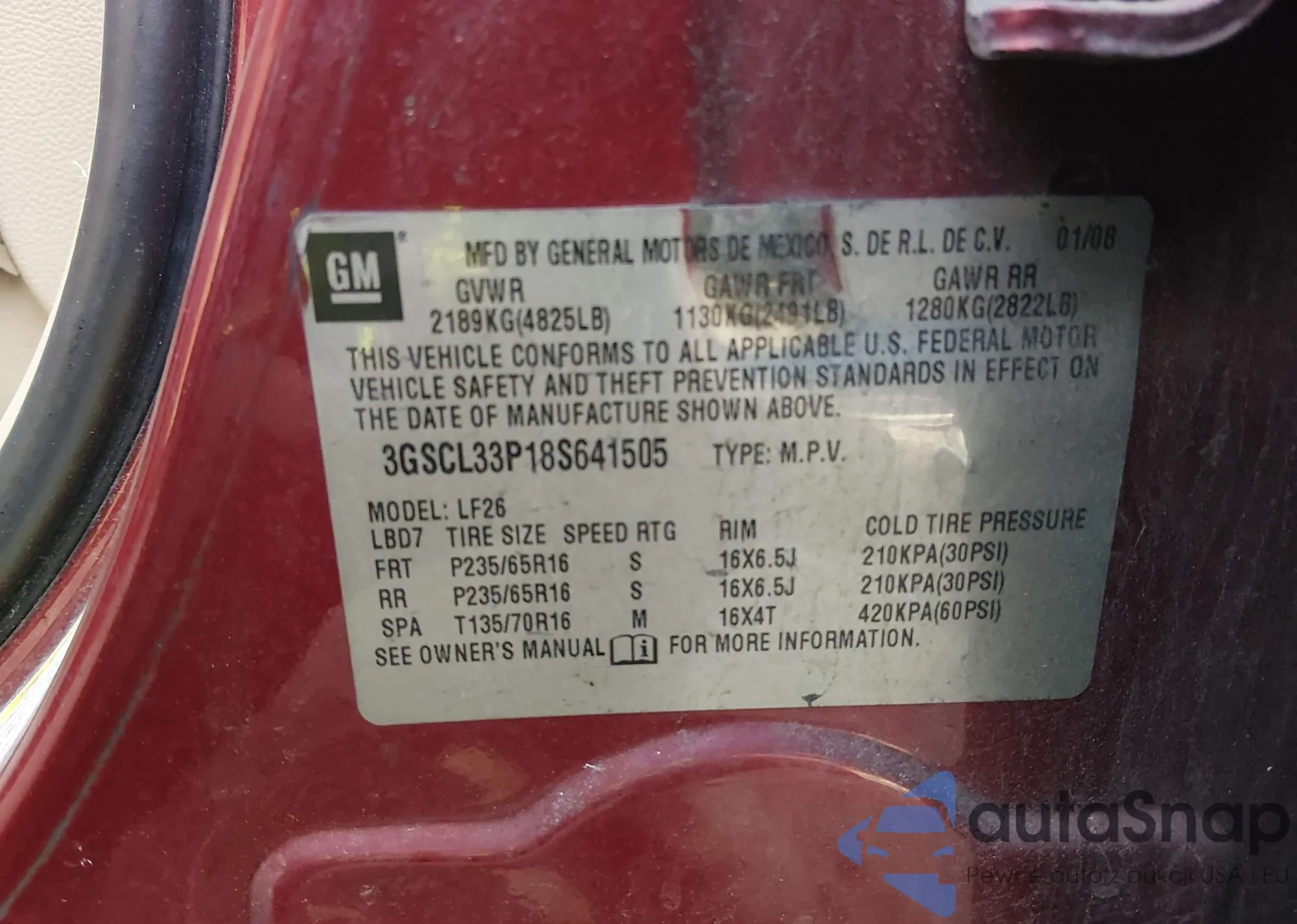 • VIN 3GSCL33P18S641505
