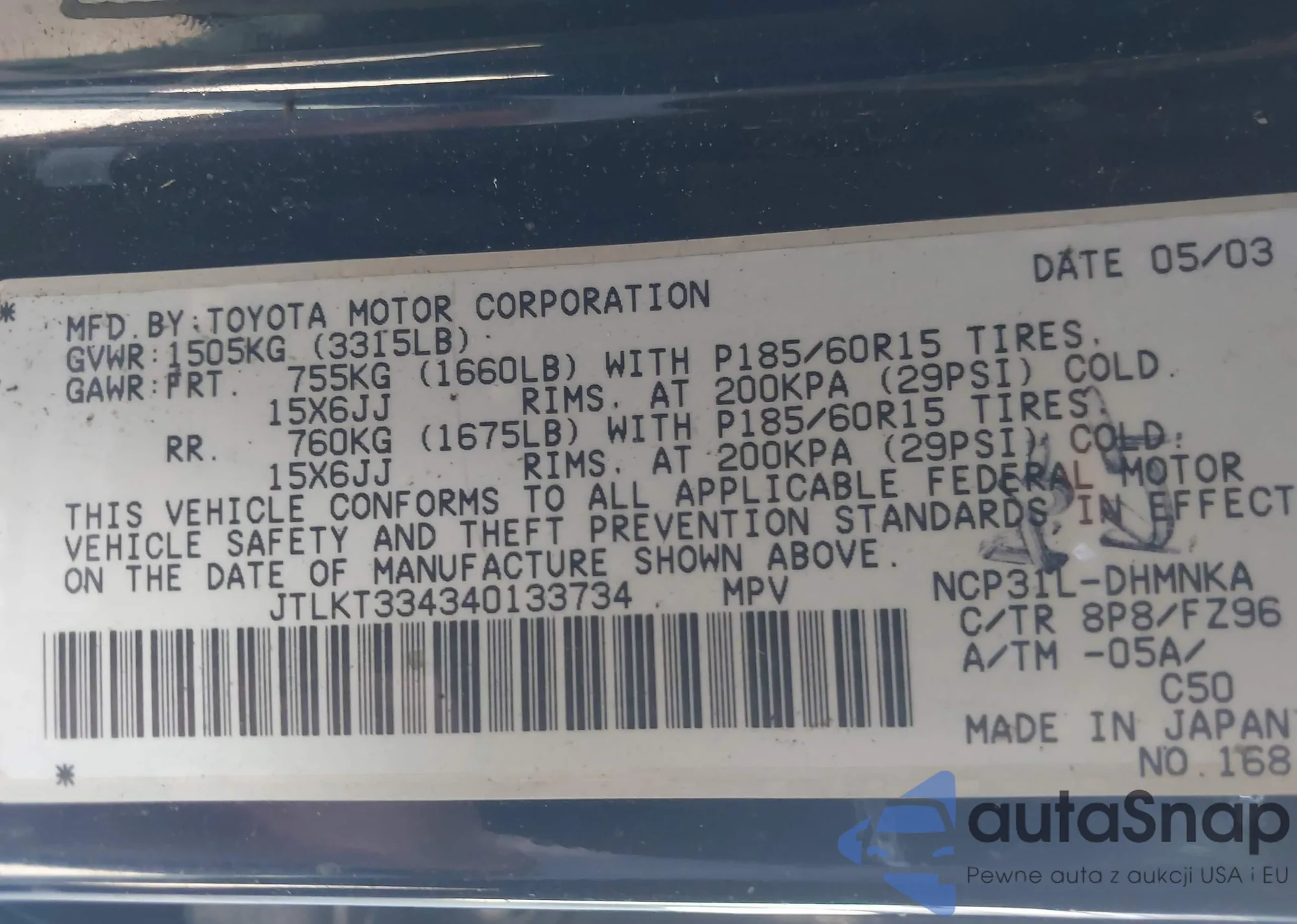 • VIN JTLKT334340133734