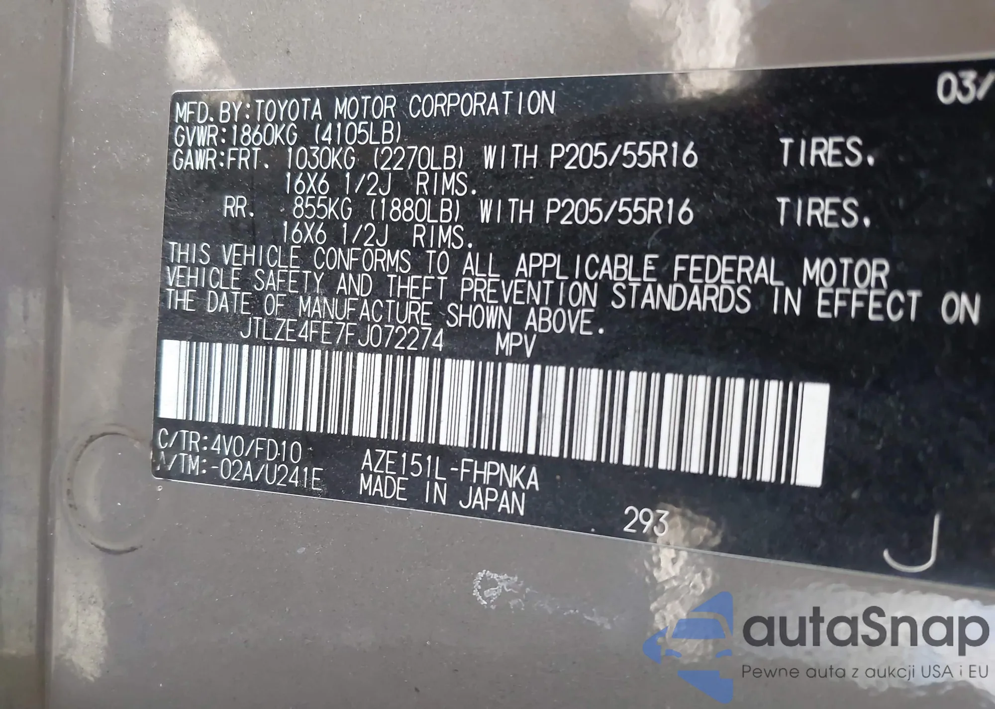 • VIN JTLZE4FE7FJ072274