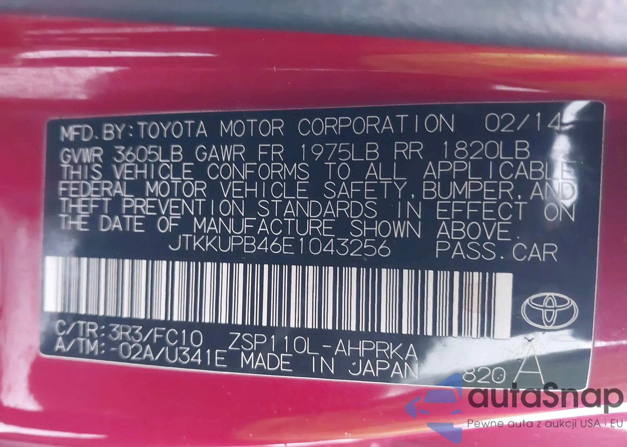 • VIN JTKKUPB46E1043256