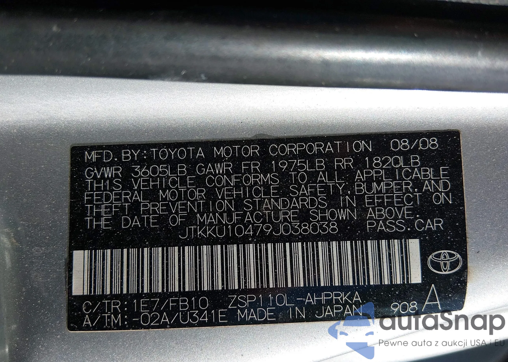 LOT: 44138042 VIN: JTKKU10428J030136