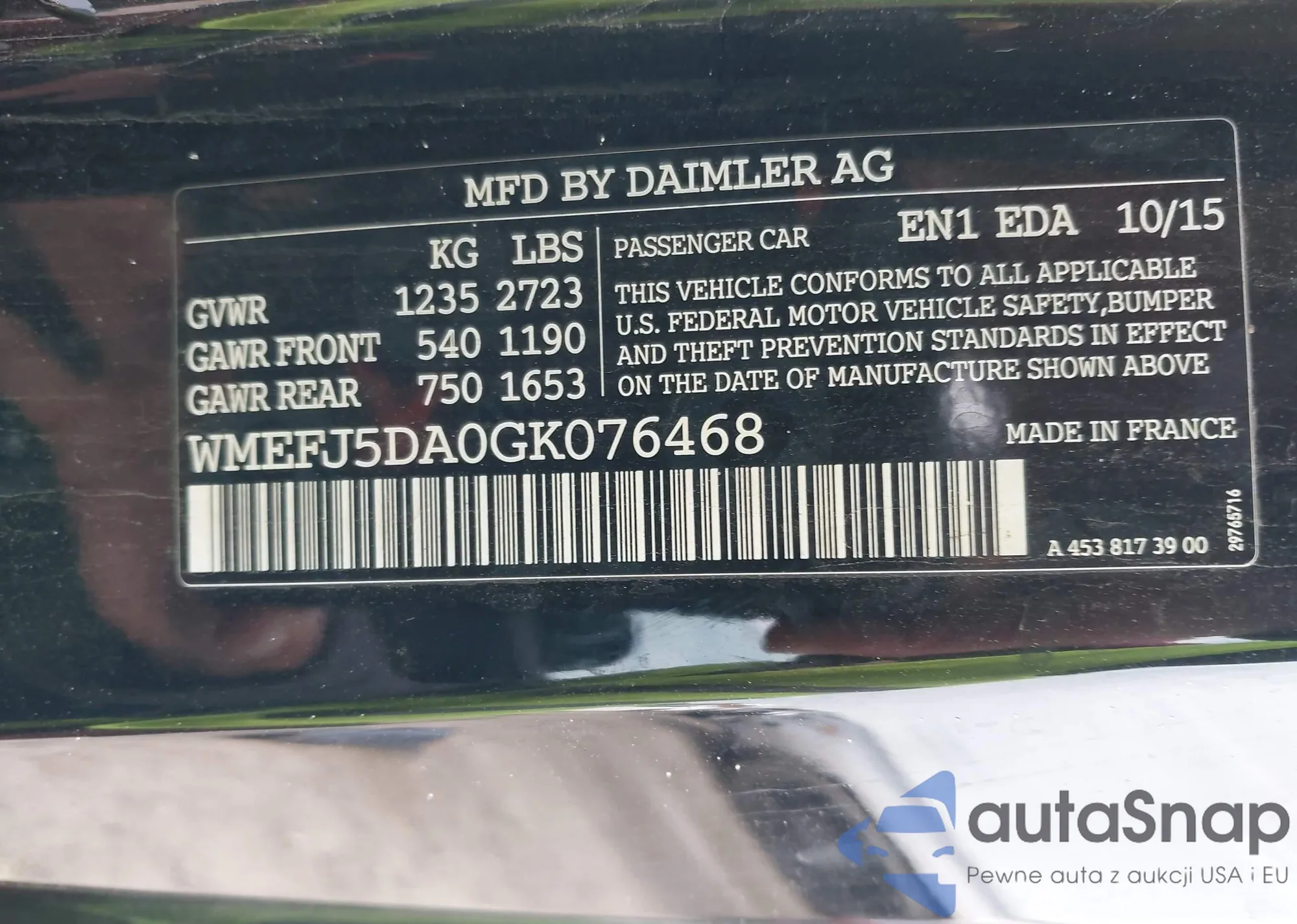 • VIN WMEFJ5DA0GK076468