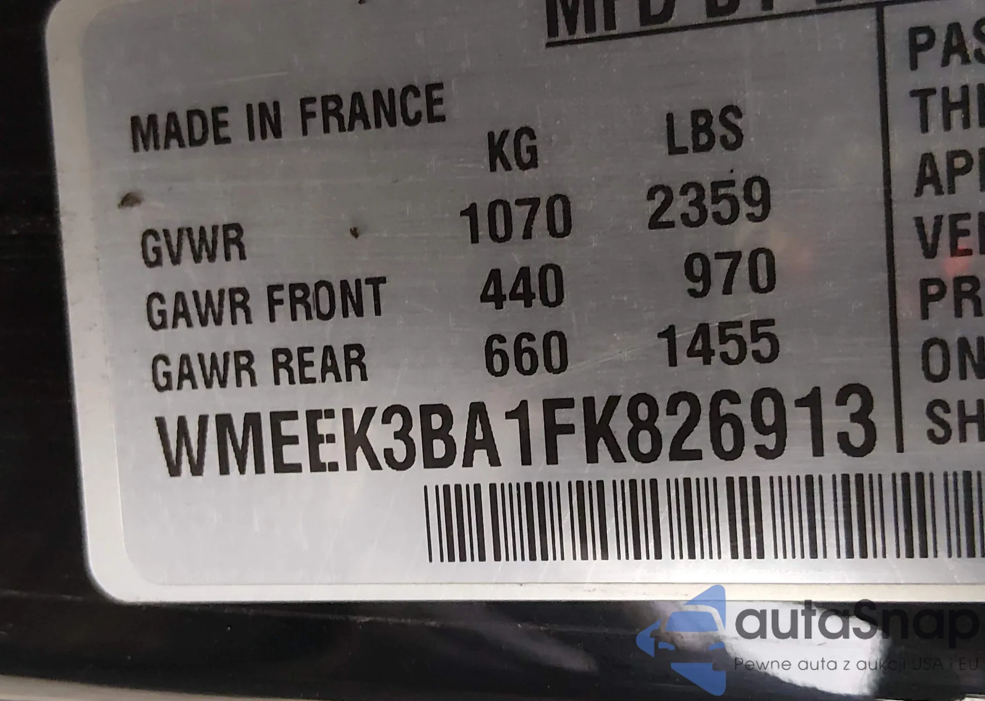 • VIN WMEEK3BA1FK826913