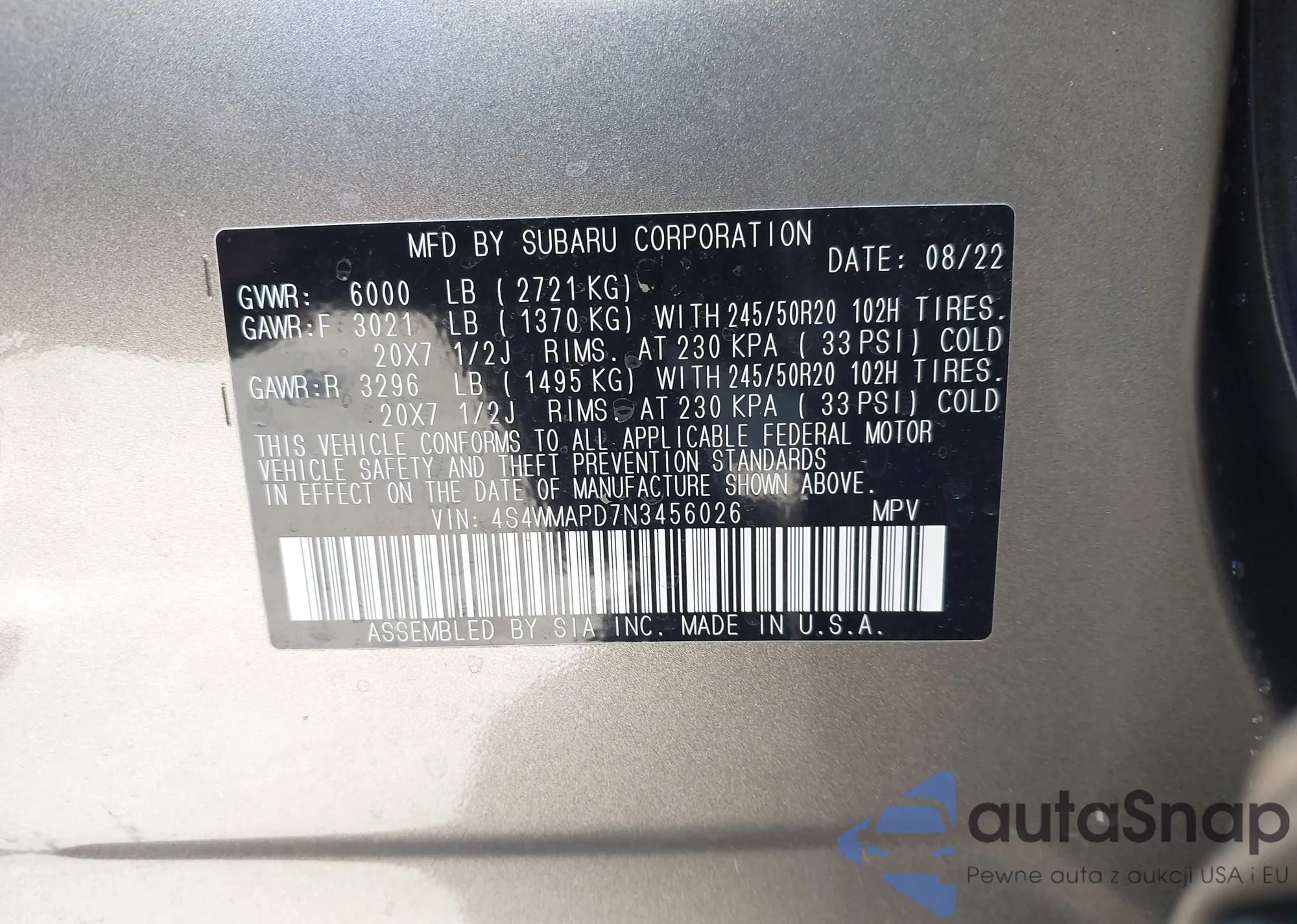 • VIN 4S4WMAPD7N3456026