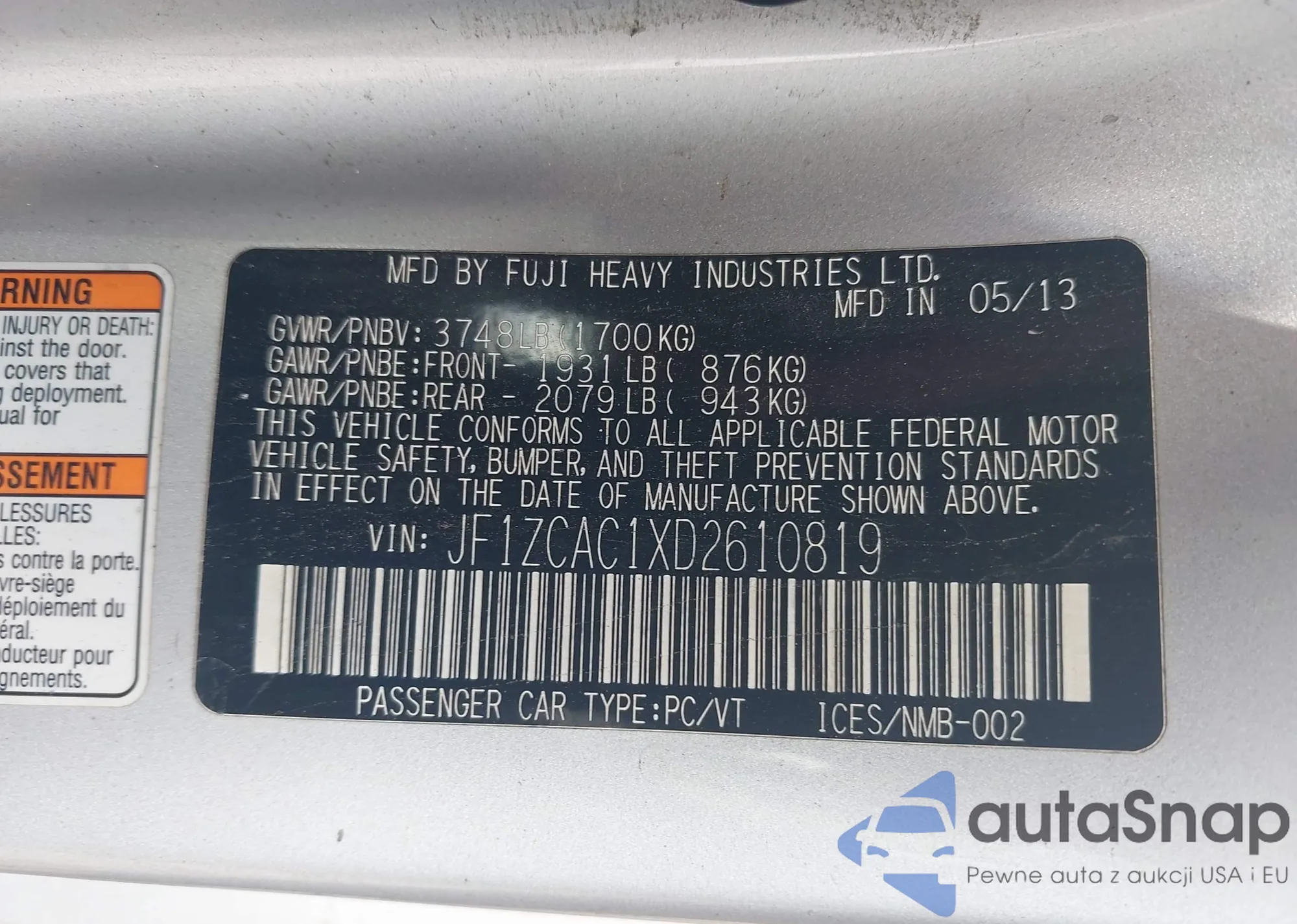 • VIN JF1ZDBF10P8706734