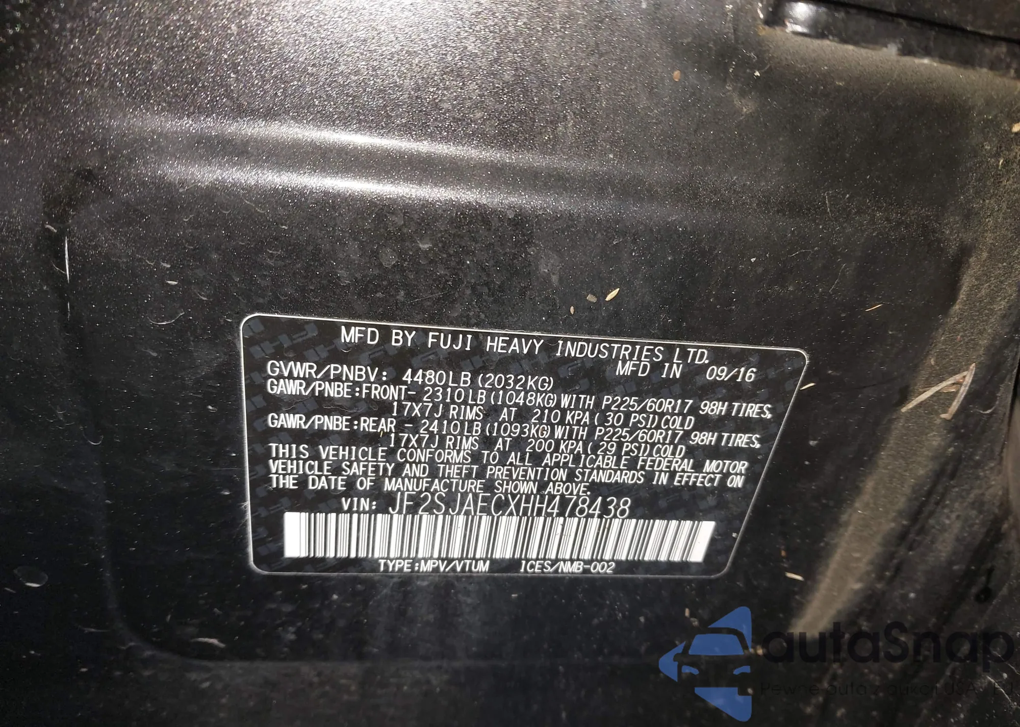 • VIN JF2SJAECXHH466435