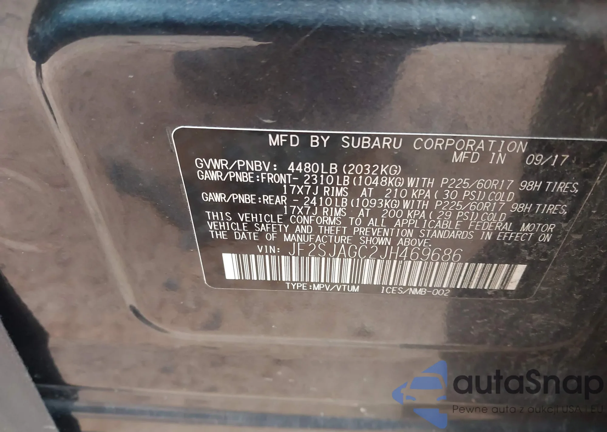 LOT: 44246471 VIN: JF2SJAEC1JH536815