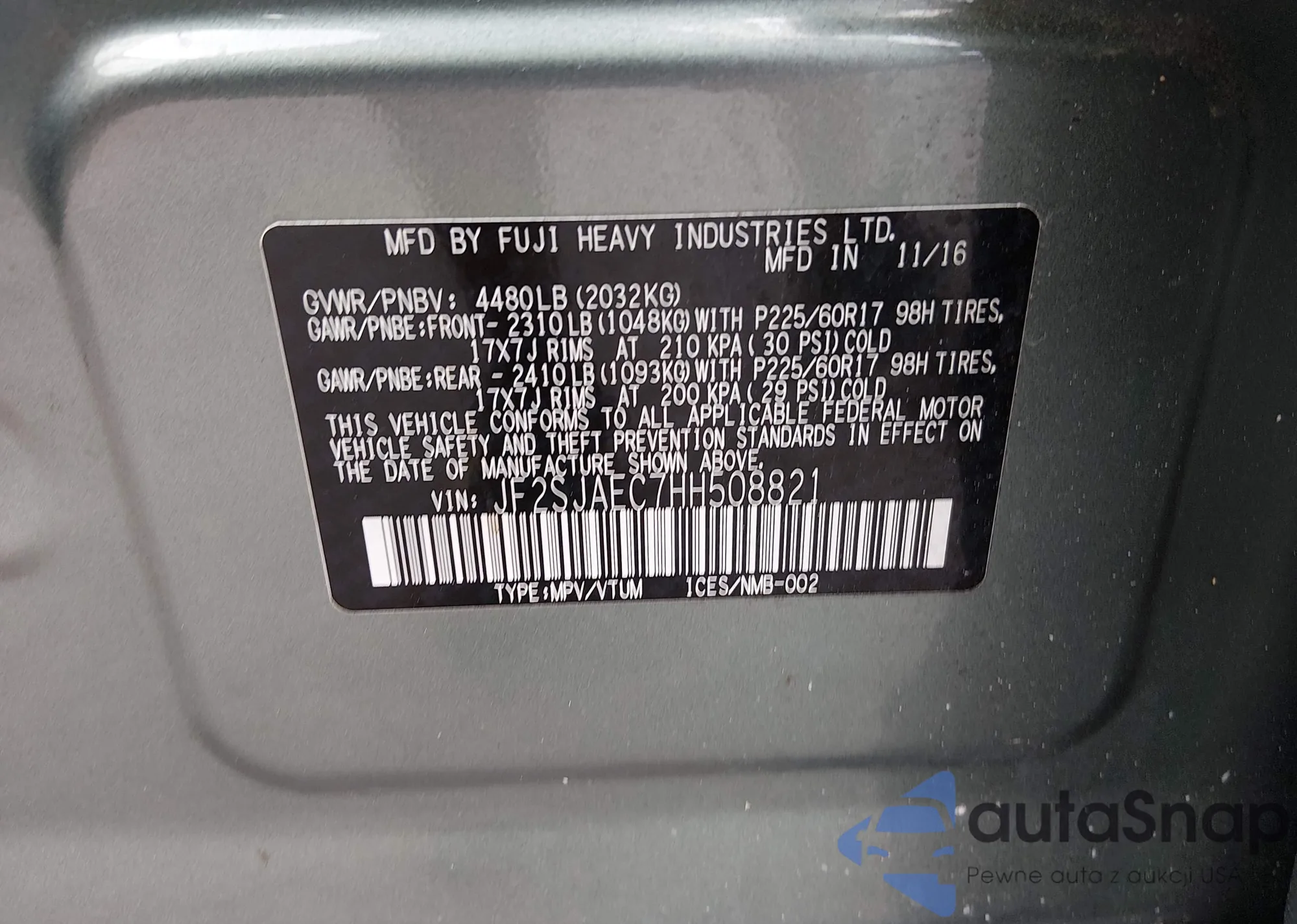 • VIN JF2SJAEC7HH508821