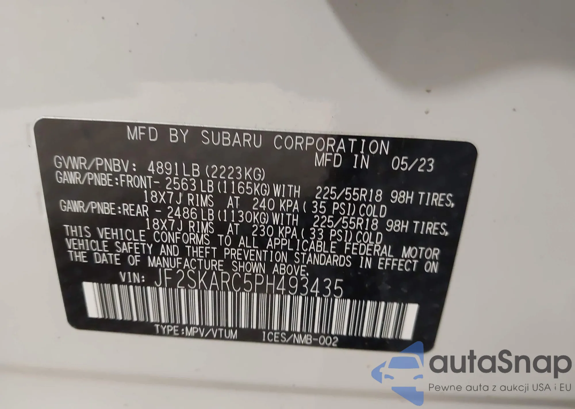 • VIN JF2SKARC5PH493435