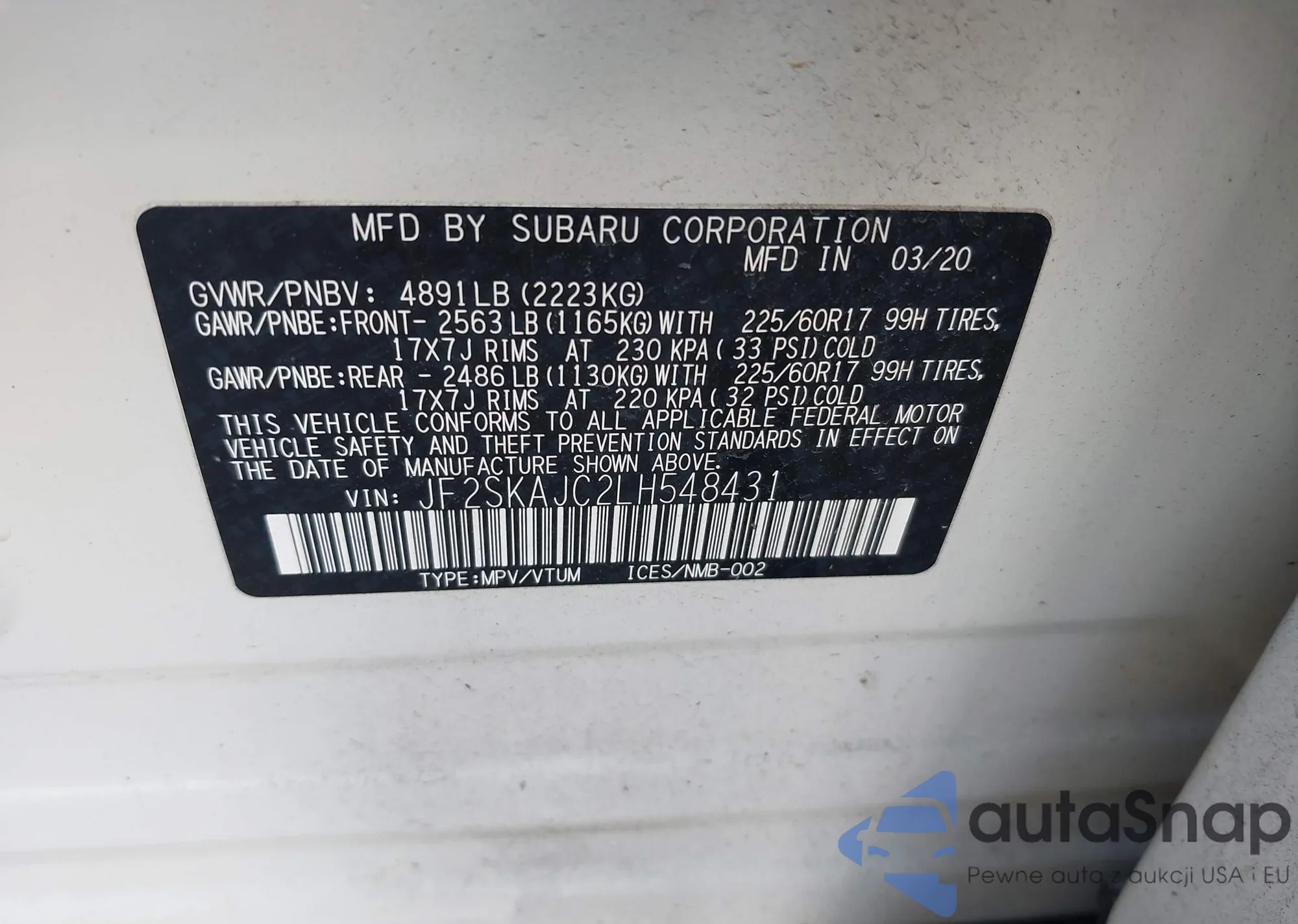 • VIN JF2SKAJC2LH548431