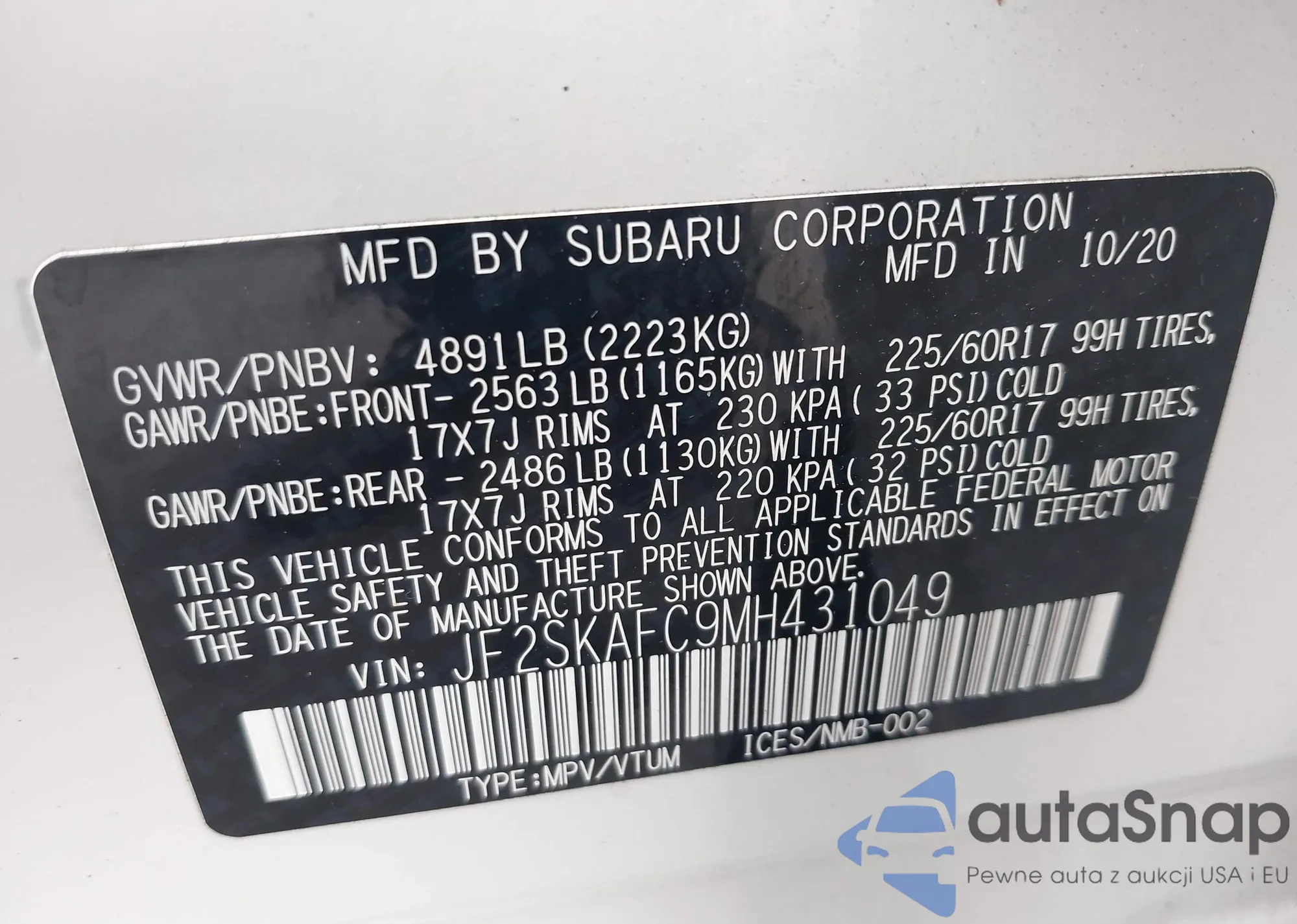 • VIN JF2SKAFC9MH431049