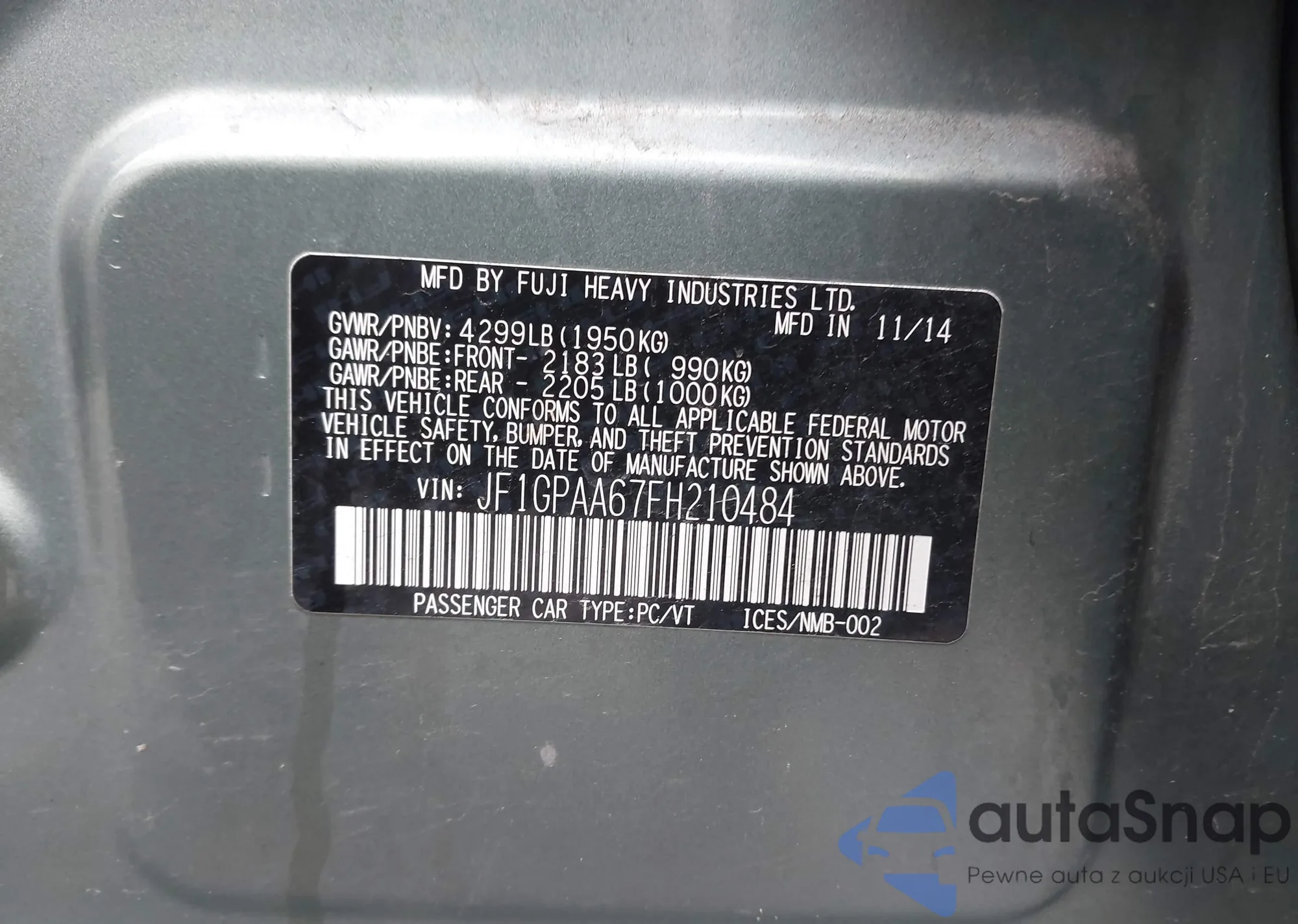 • VIN JF1GPAA67FH210484