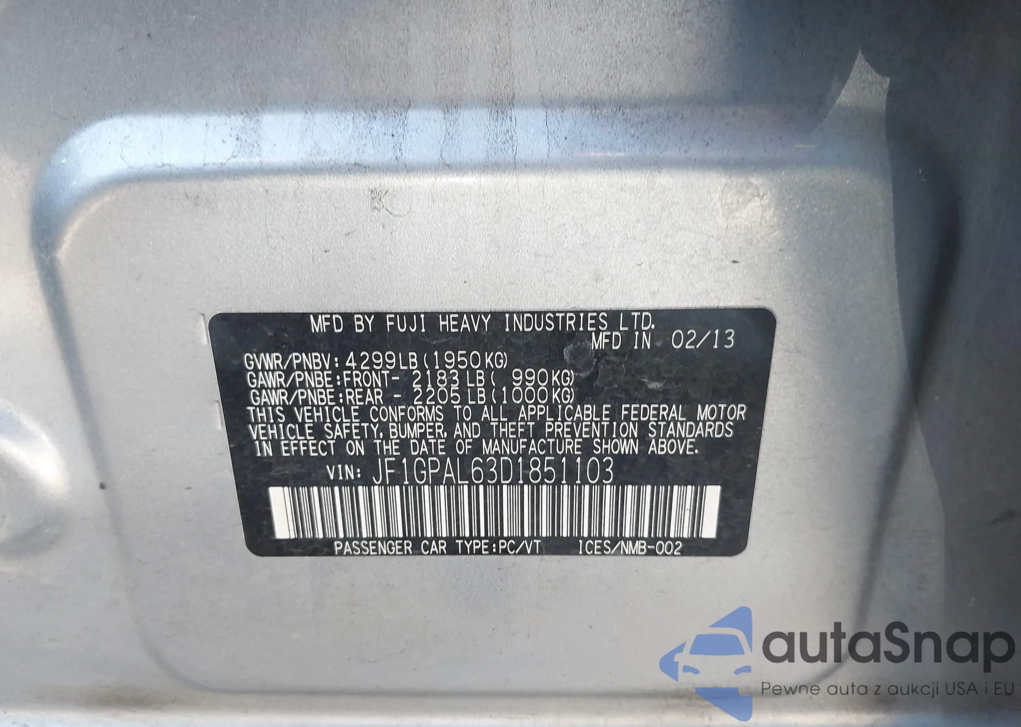 • VIN JF1GPAL63D1851103