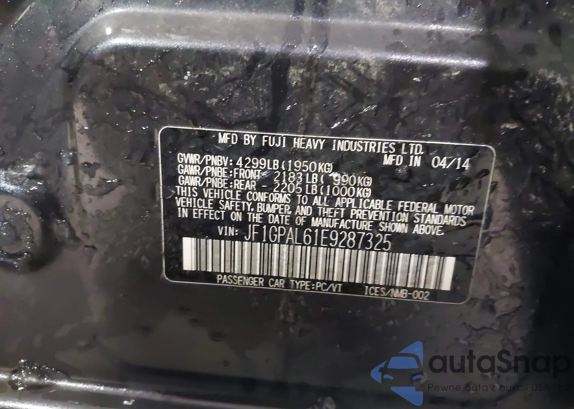 • VIN JF1GPAL61E9287325