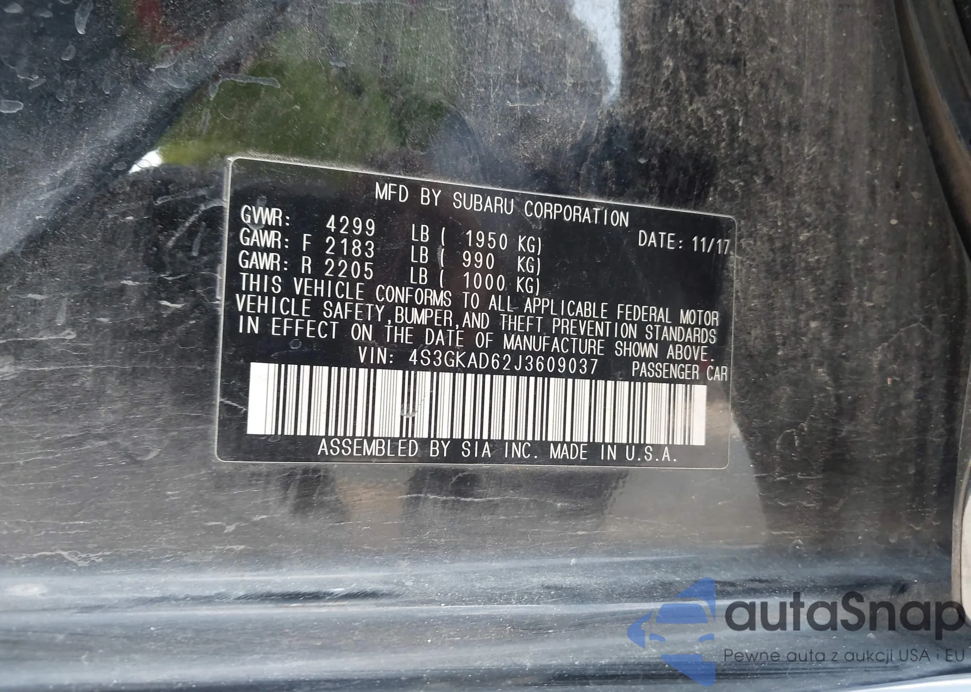 • VIN 4S3GKAD62J3609037