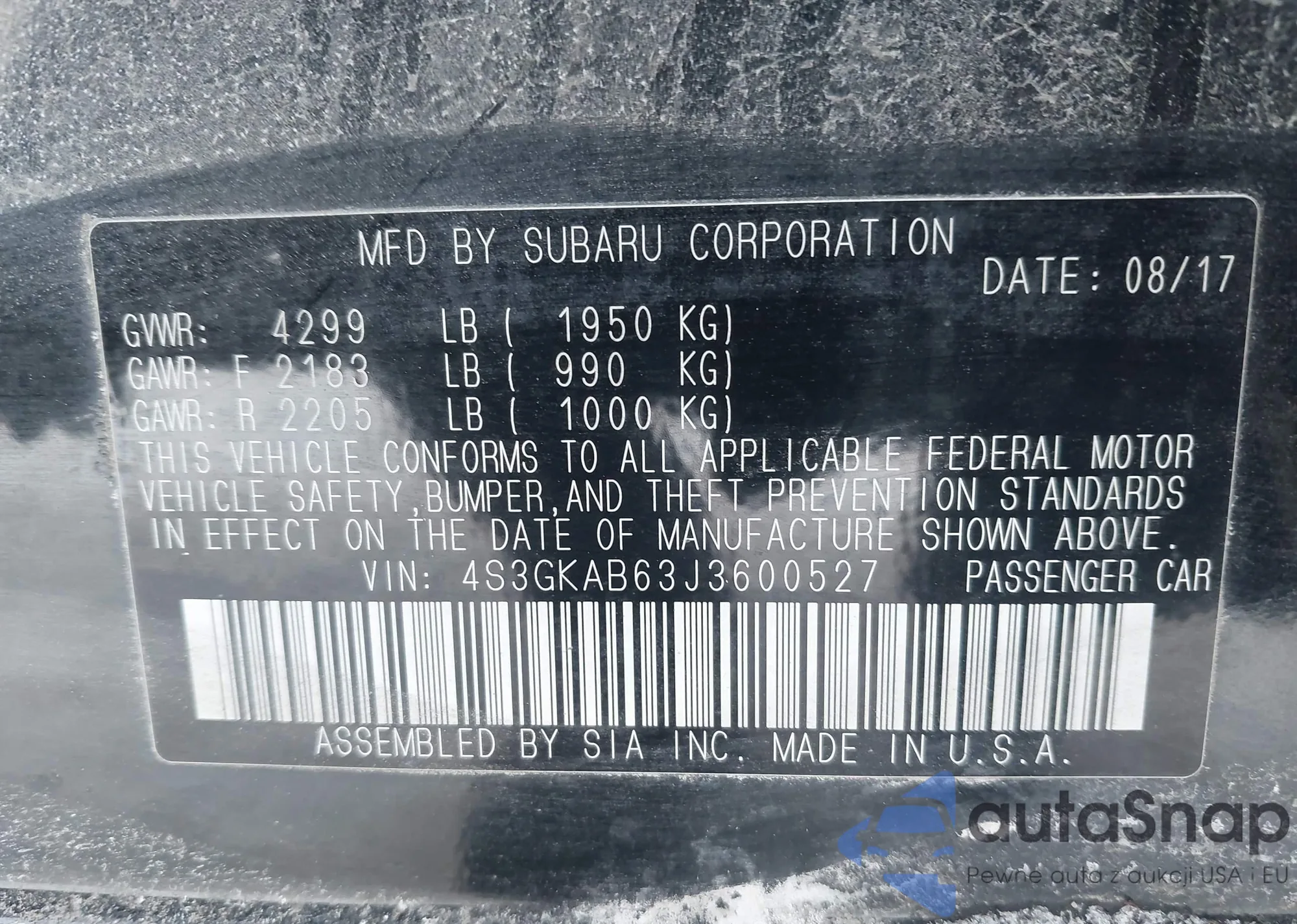 • VIN 4S3GKAB63J3600527