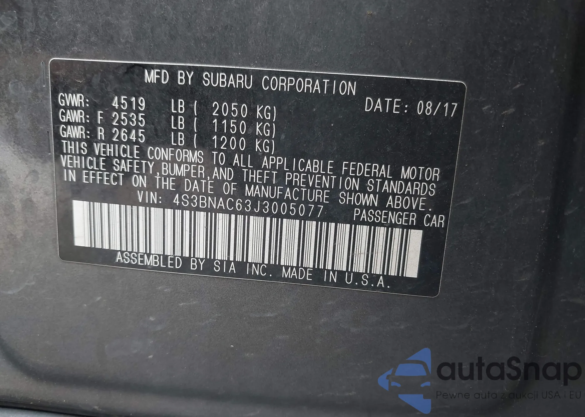 • VIN 4S3BNAC63J3005077