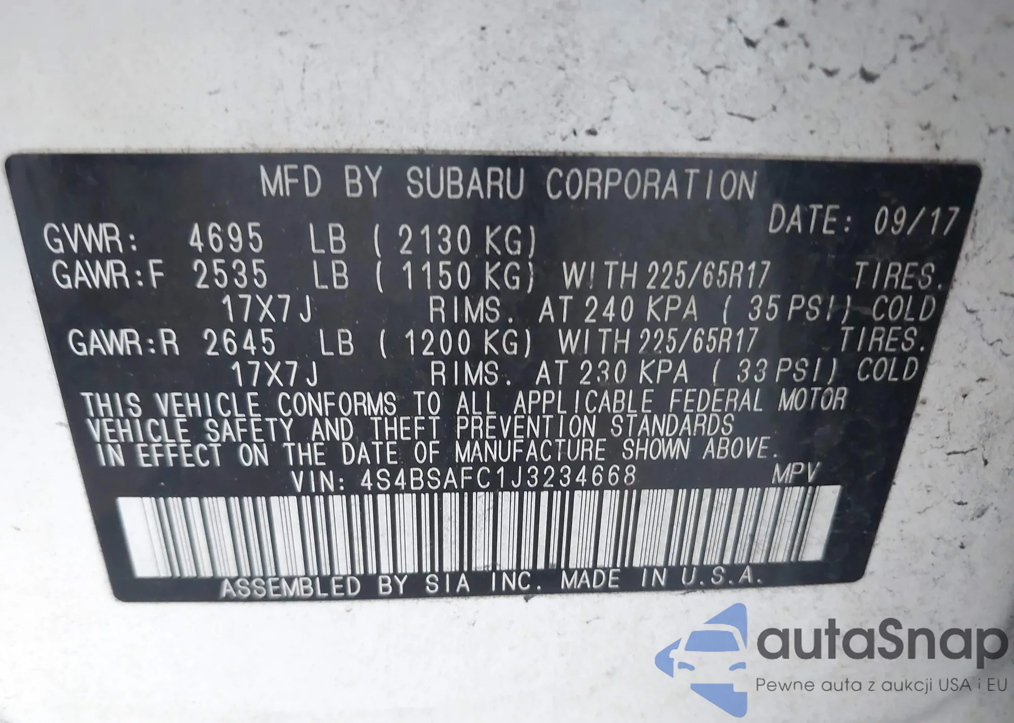 • VIN 4S4BSAFC1J3234668