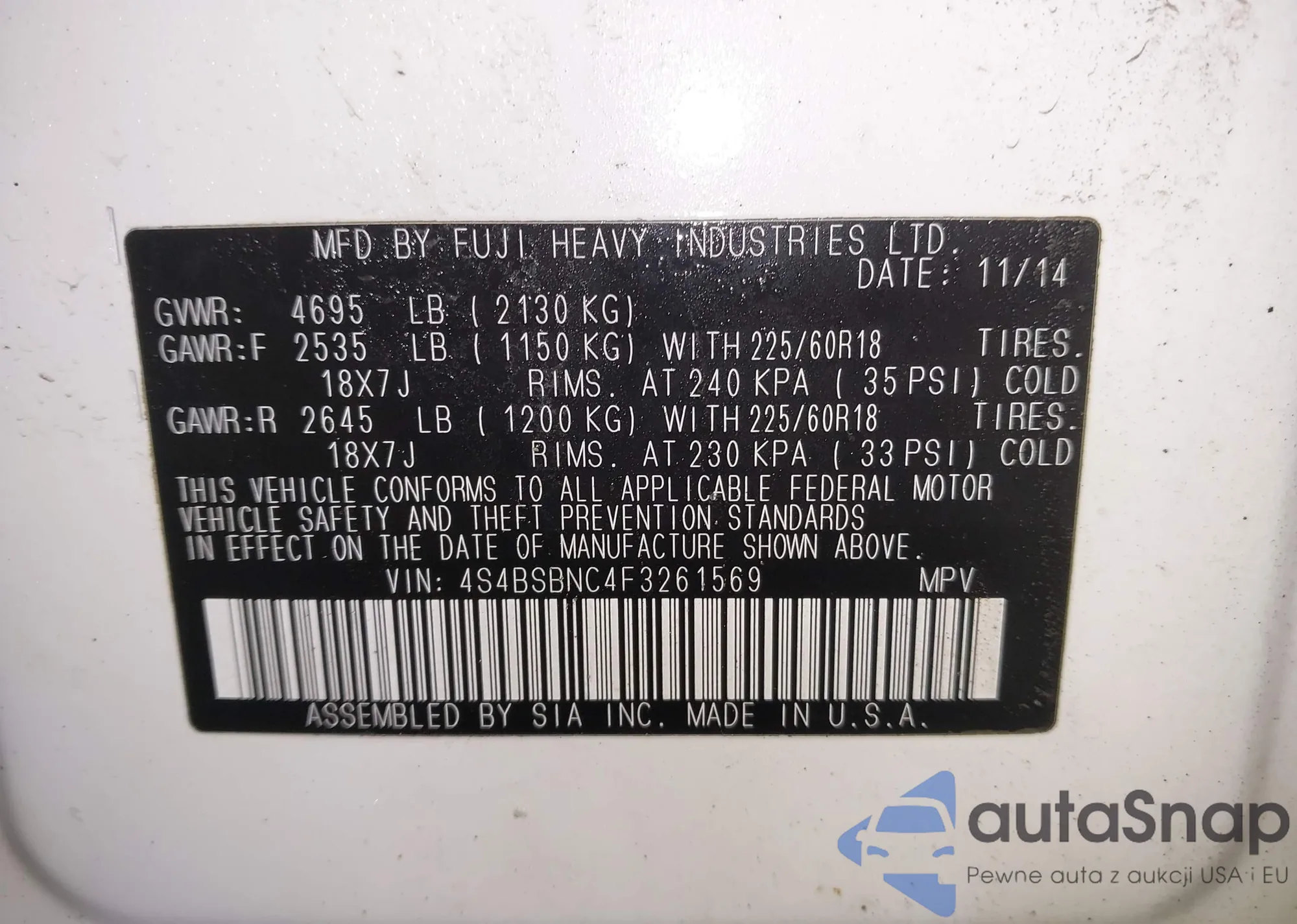 • VIN 4S4BSBNC4F3261569