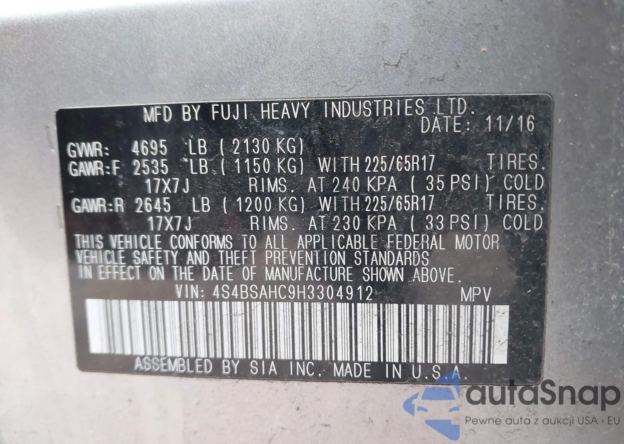 • VIN 4S4BSAHC9H3304912