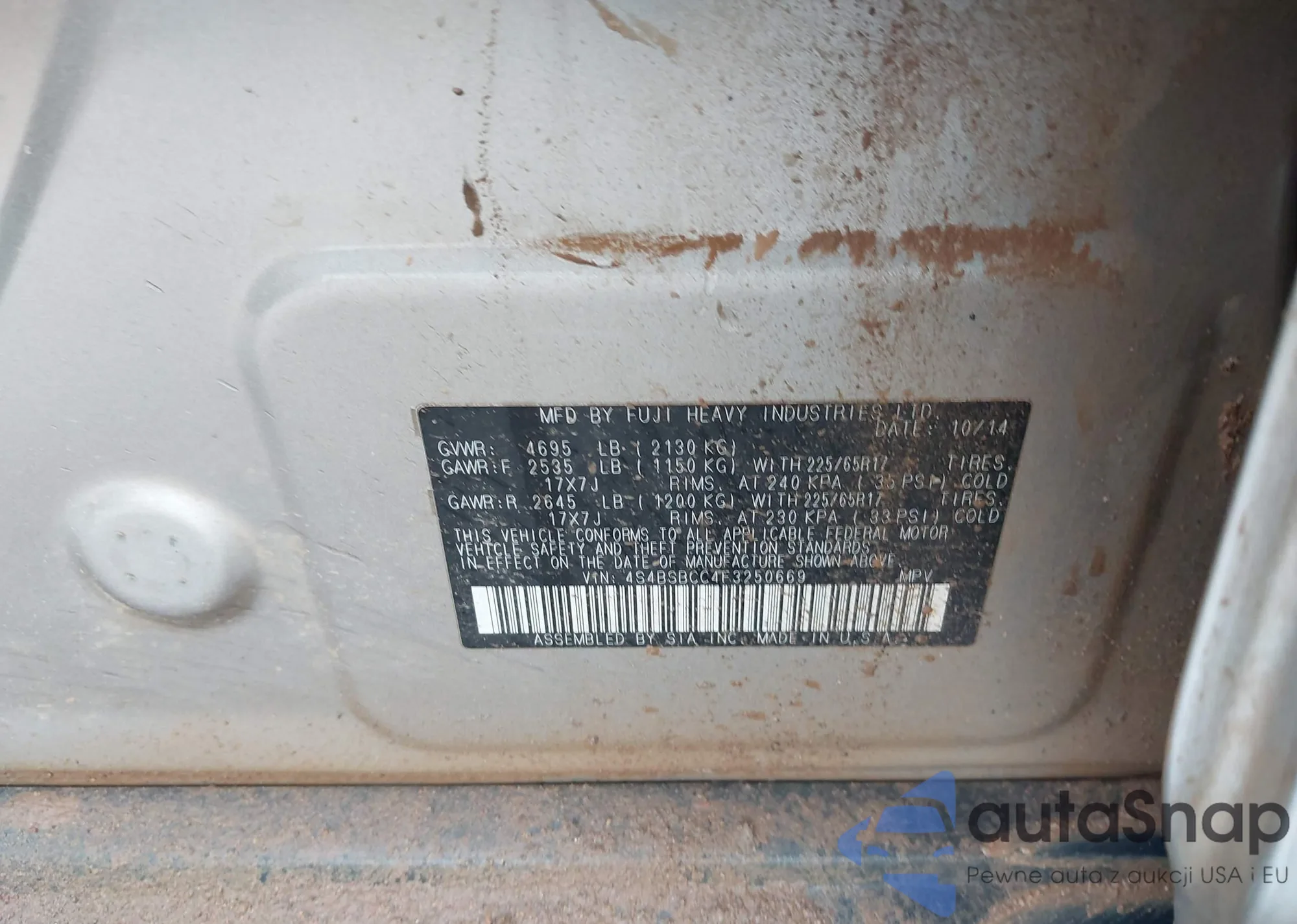 • VIN 4S4BSBCC4F3250669