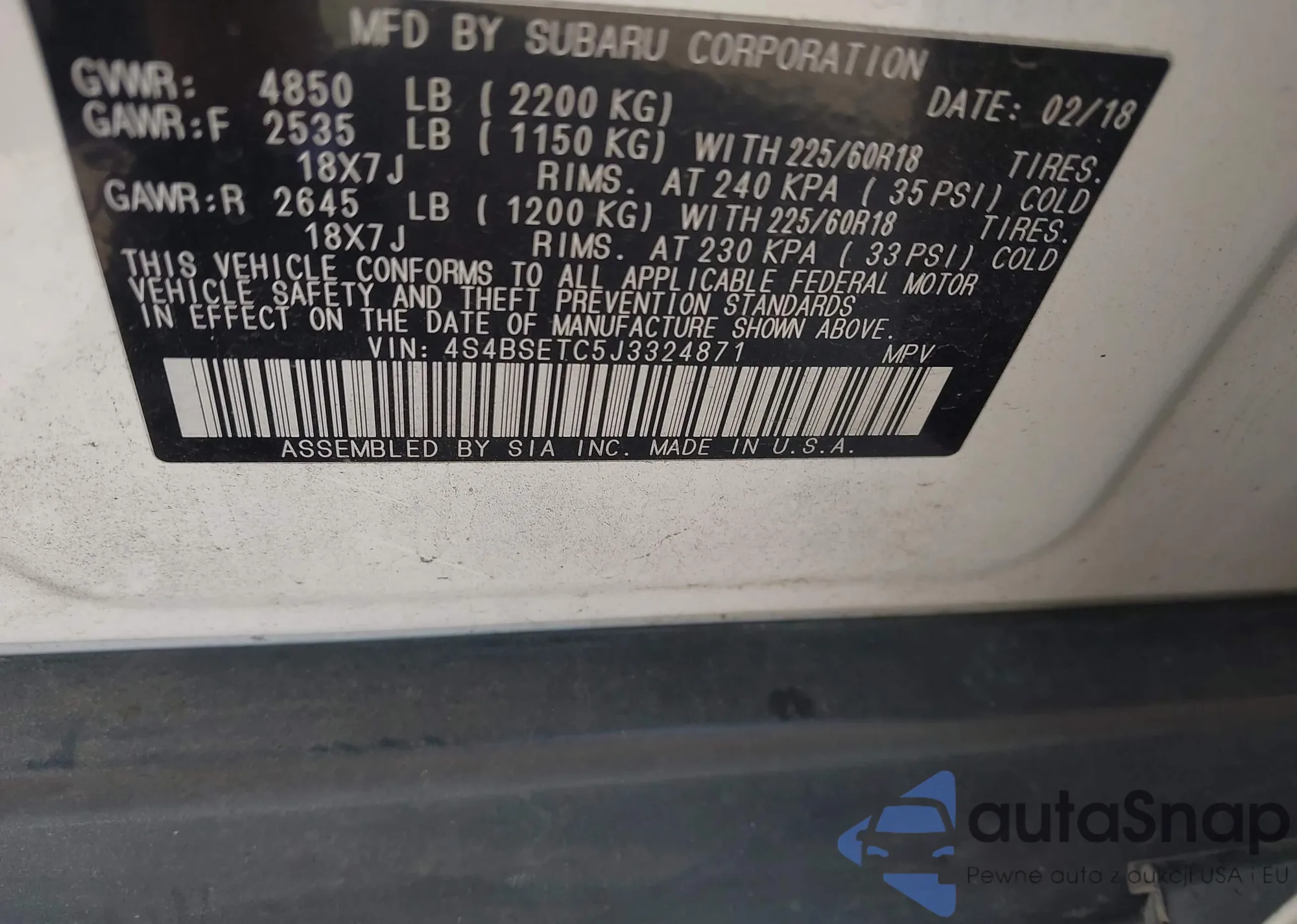• VIN 4S4BSETC5J3324871