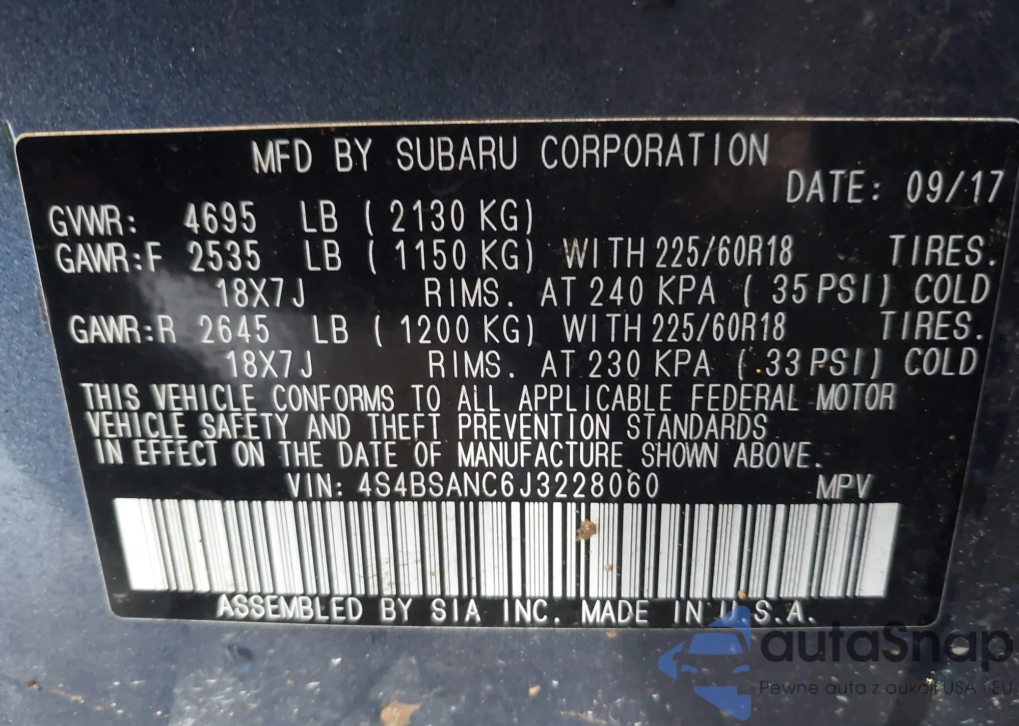 LOT: 44048227 VIN: 4S4BSAFC3J3249897