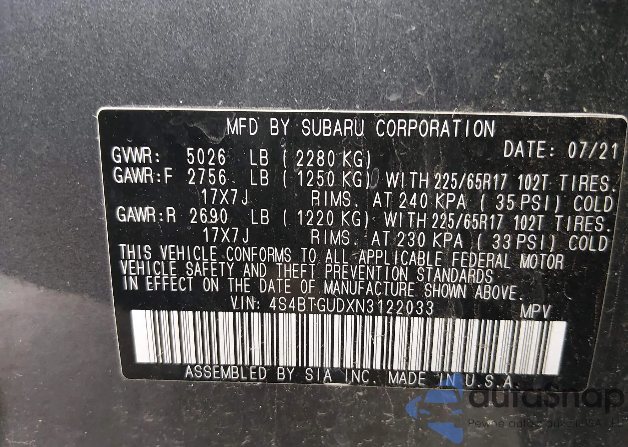 • VIN 4S4BTAAC5N3201232
