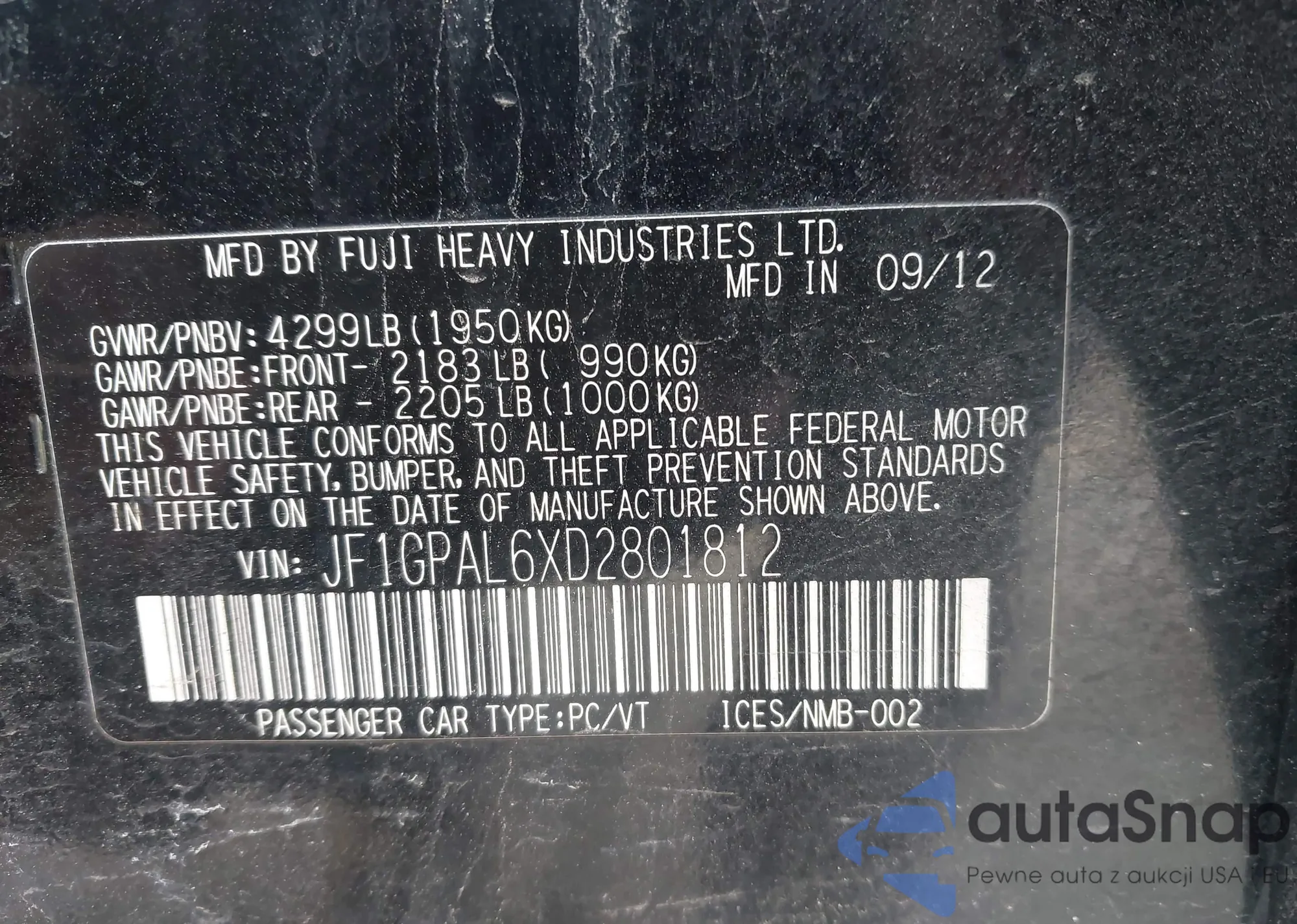 • VIN JF1GPAL6XD2801812