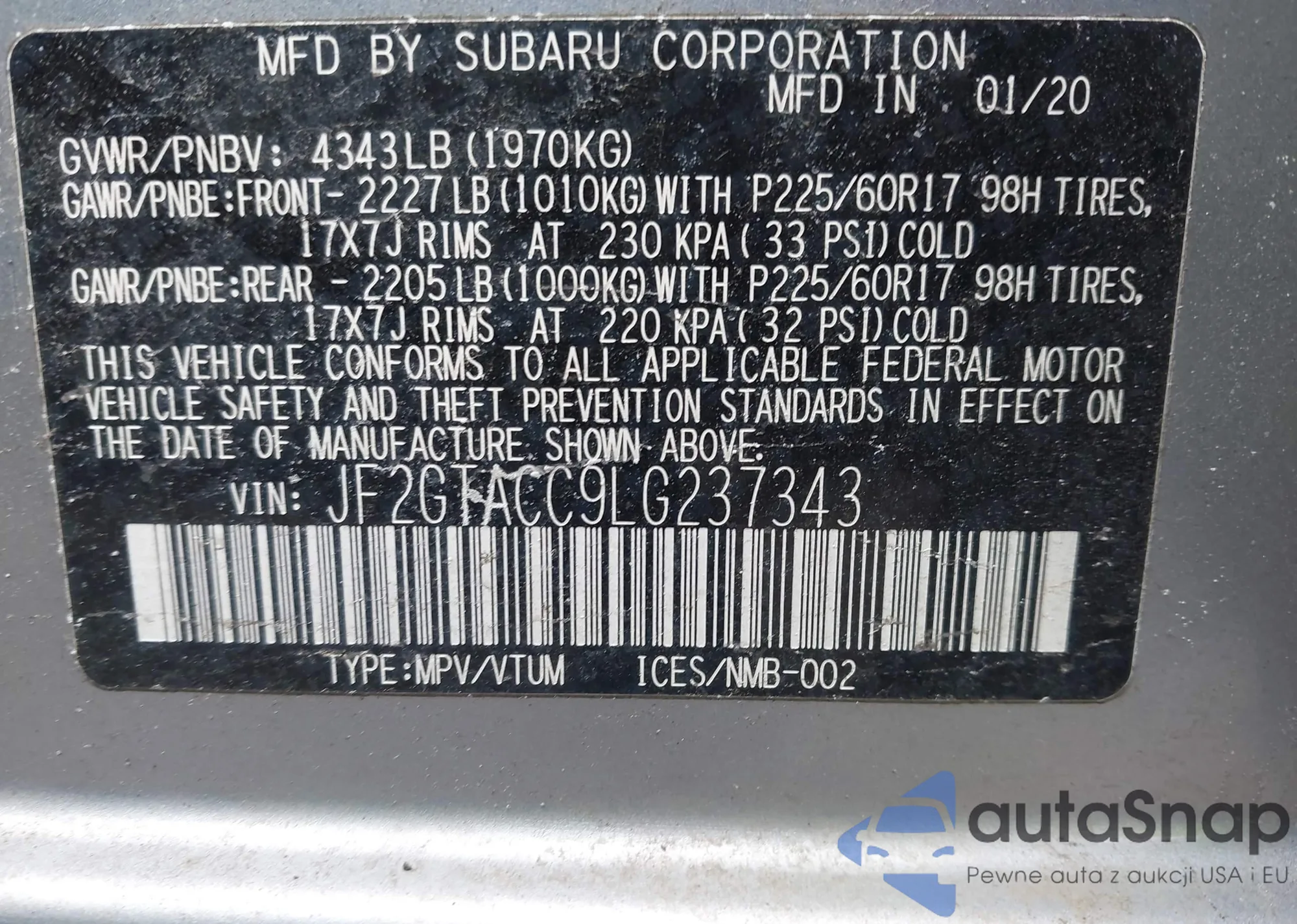 Looking to buy a Subaru from the USA? Autasnap is your go-to service for importing cars from America to Poland. We offer both 'turnkey' and 'home delivery' options, ensuring you are supported at every step of the process, including repairs. Trust us to help you secure a high-quality Subaru that meets your needs.