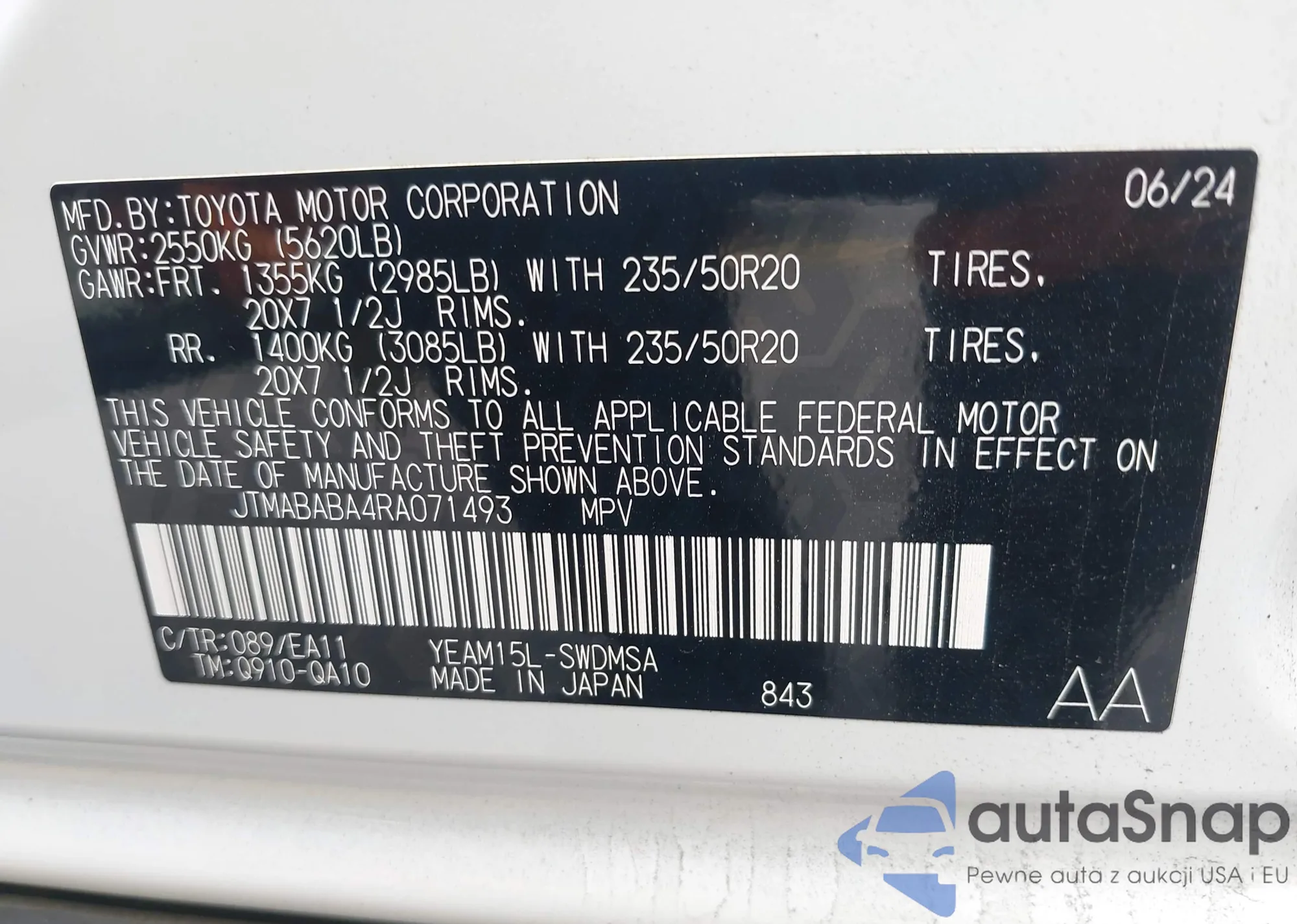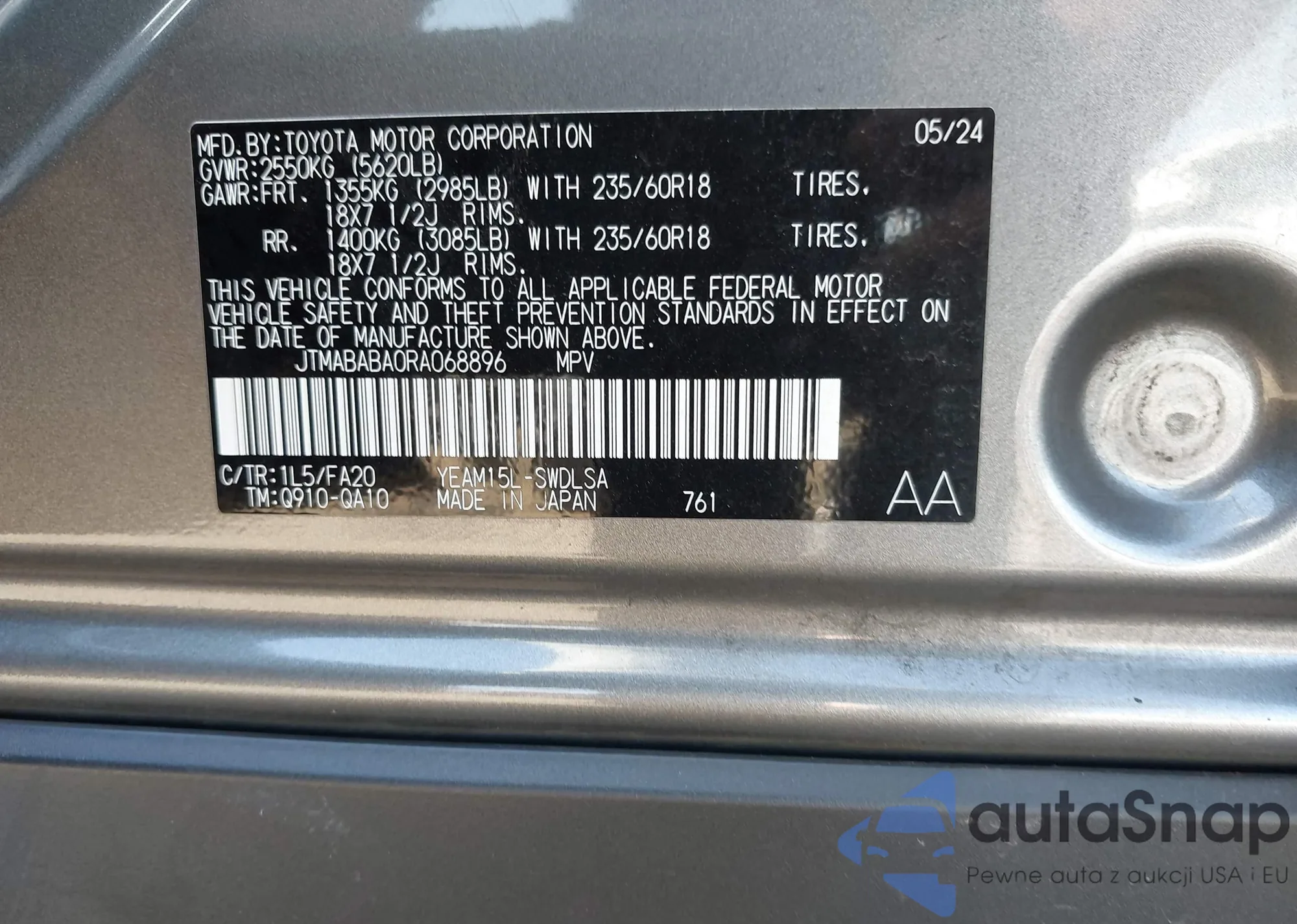 LOT: 43966154 VIN: JTMABABA0RA068896