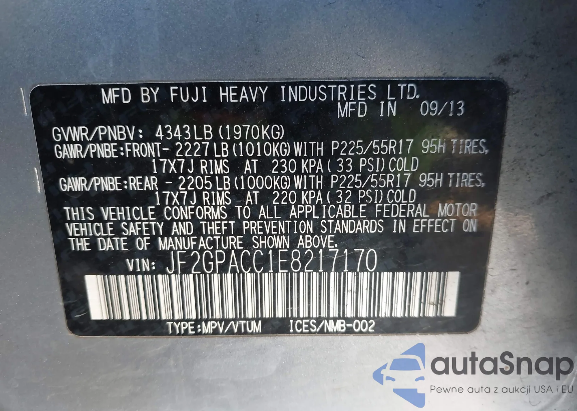 LOT: 43886481 VIN: JF2GPACC1E8217170
