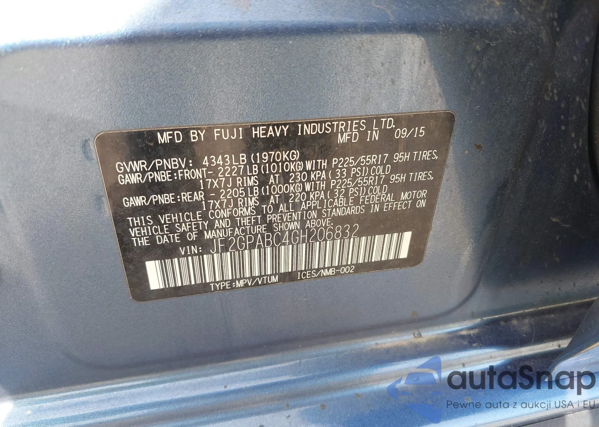 LOT: 39251153 VIN: JF2GPABC4GH206832