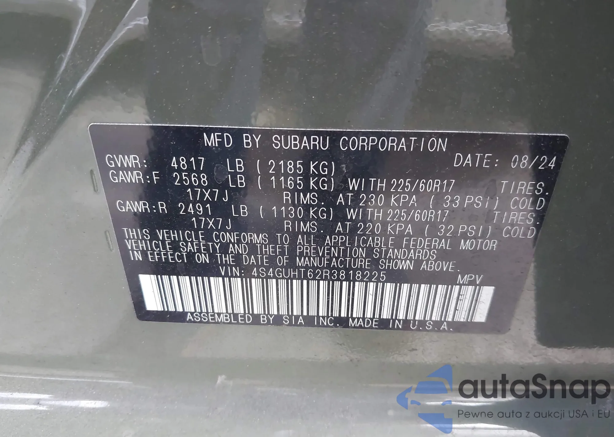 • VIN 4S4GUHT62R3818225