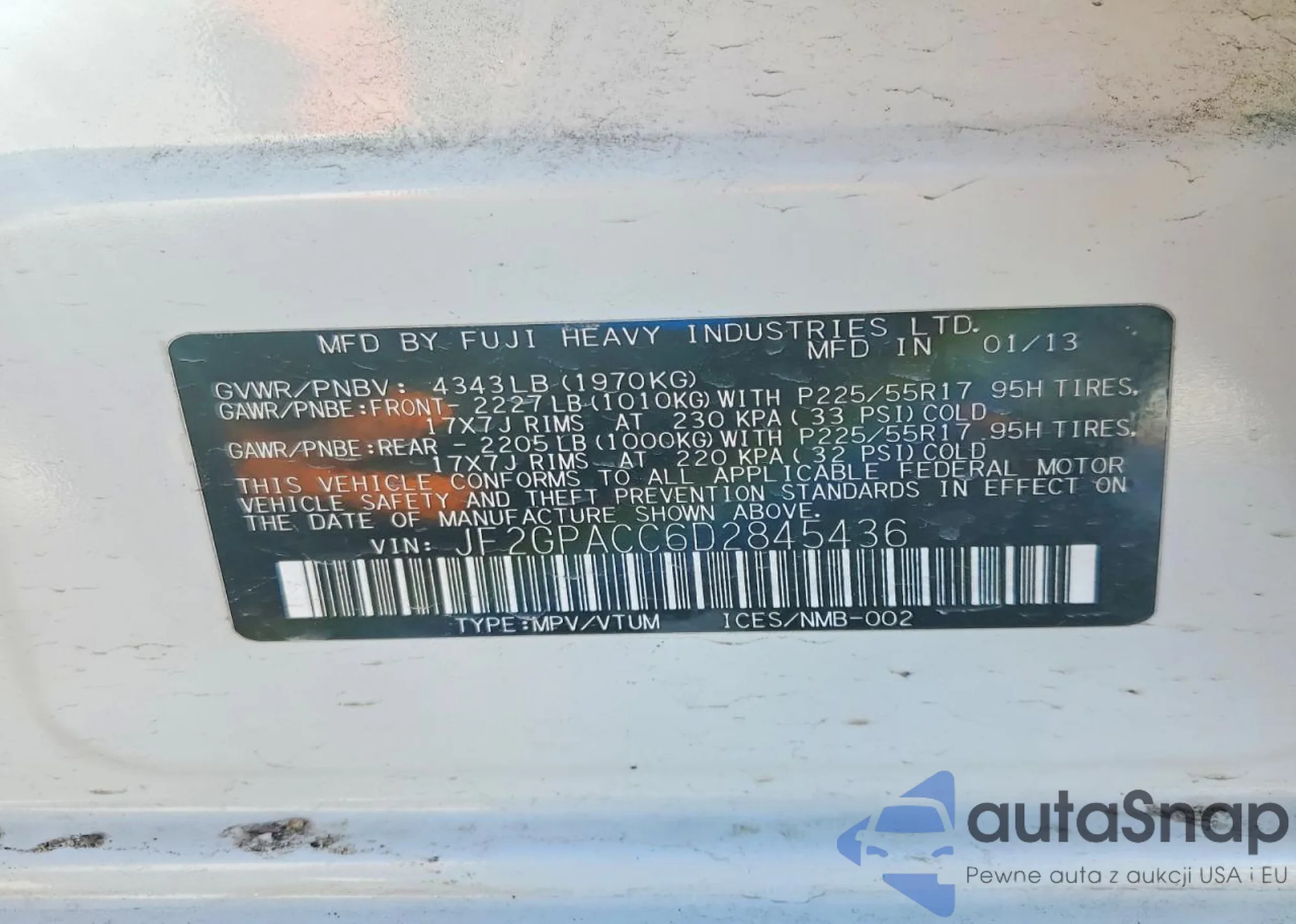 • VIN JF2GPACC6D2845436