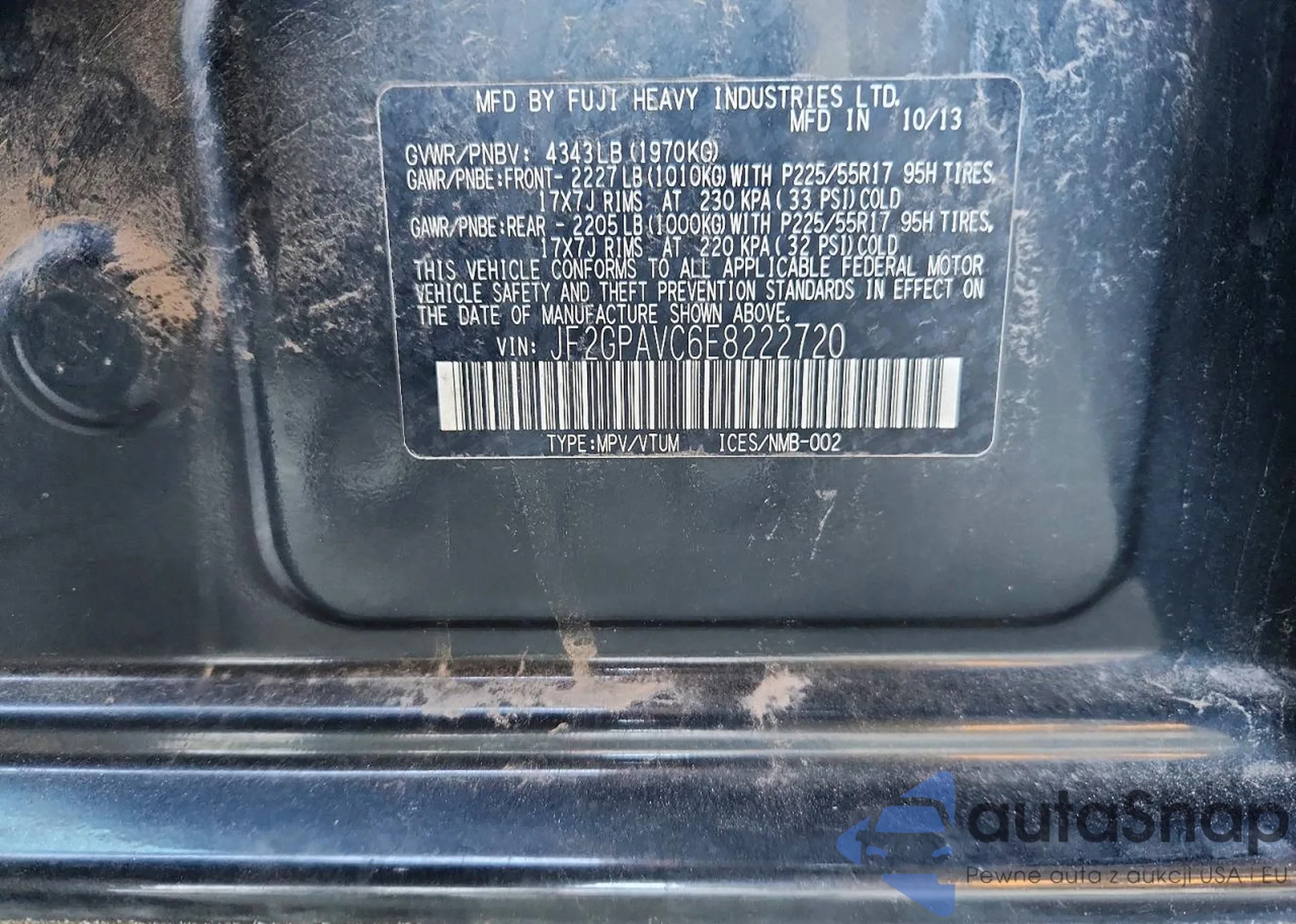 • VIN JF2GPAVC6E8222720